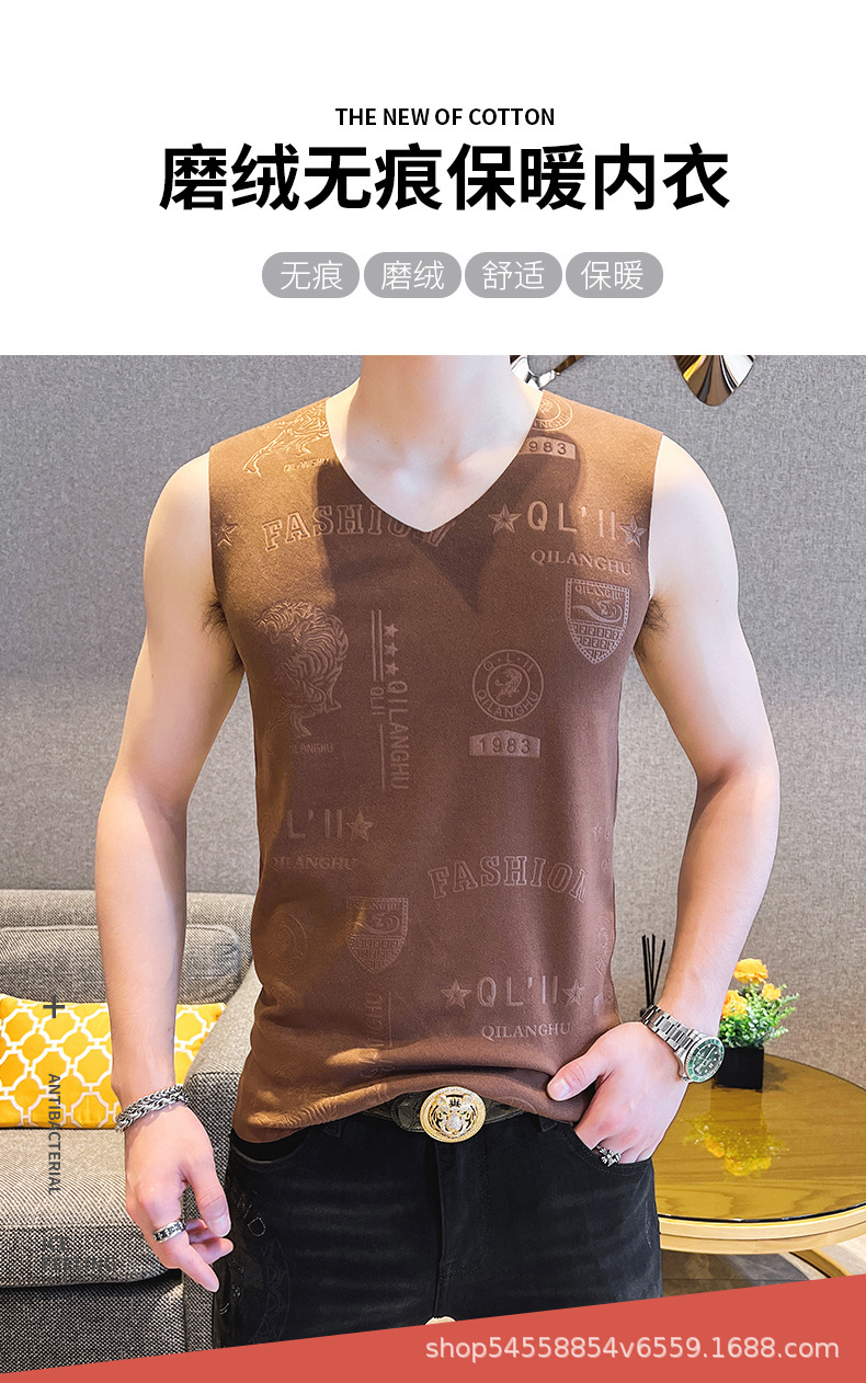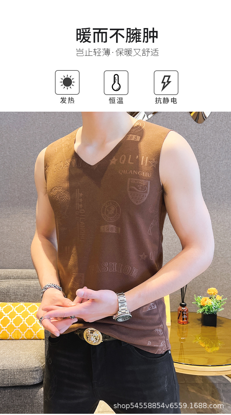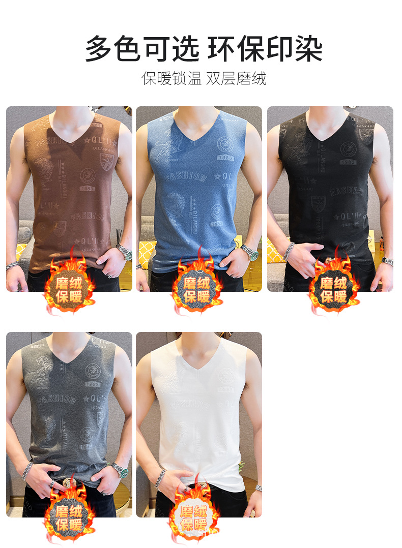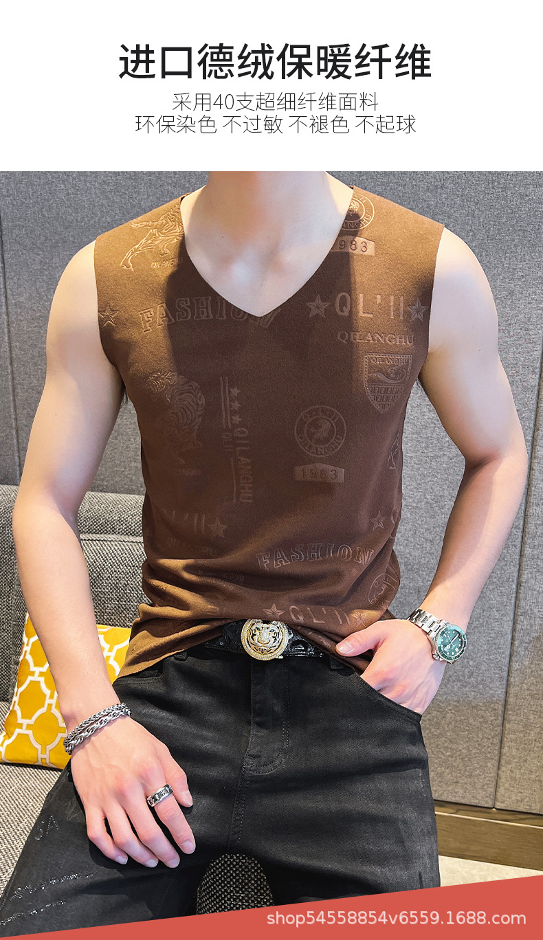 가을과 겨울 남성 추적 열 조끼 유행 엠보싱 기술 양면 양털 슬림핏 V-넥 베이스 조끼스토어 가기