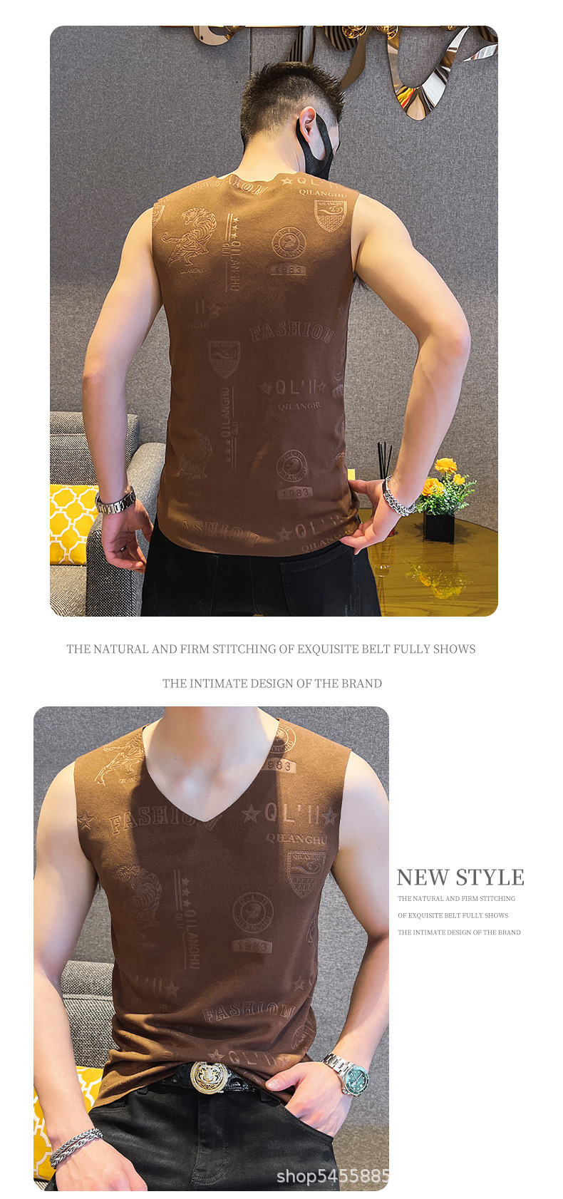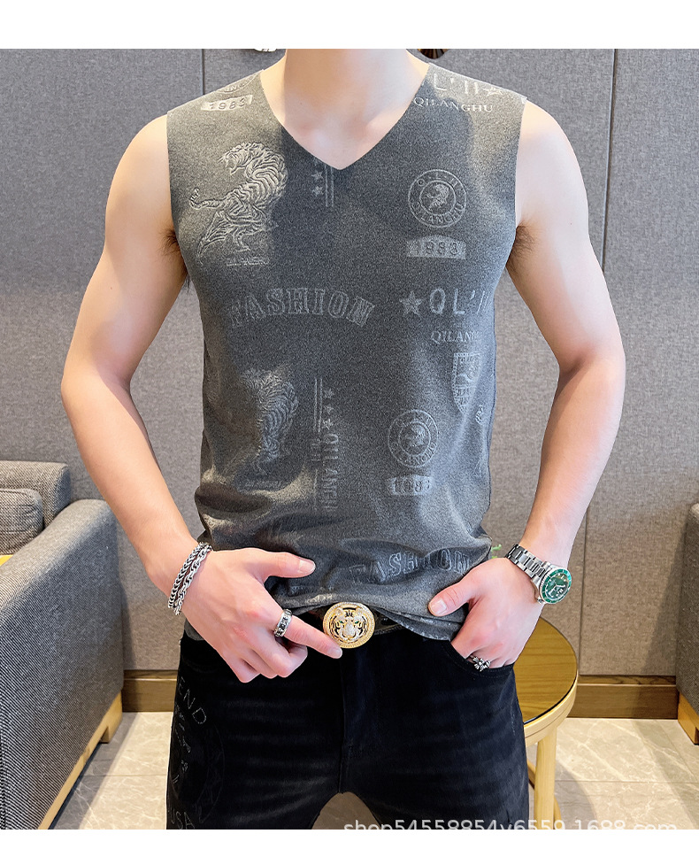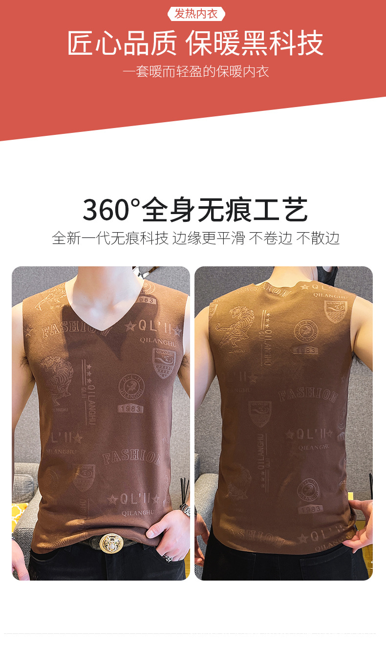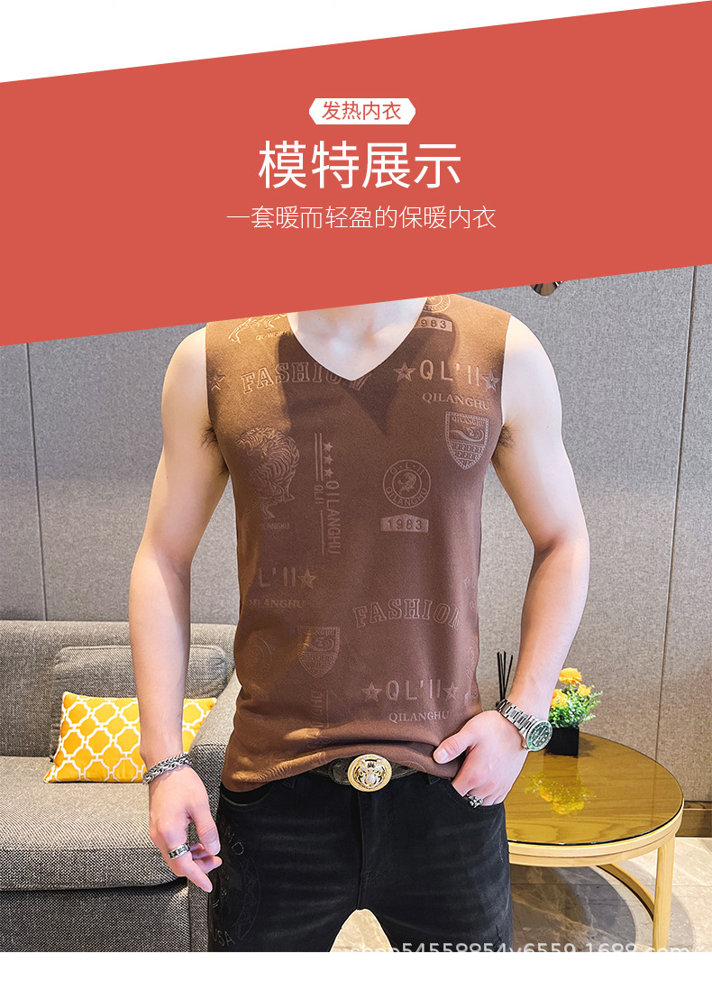 가을과 겨울 남성 추적 열 조끼 유행 엠보싱 기술 양면 양털 슬림핏 V-넥 베이스 조끼스토어 가기