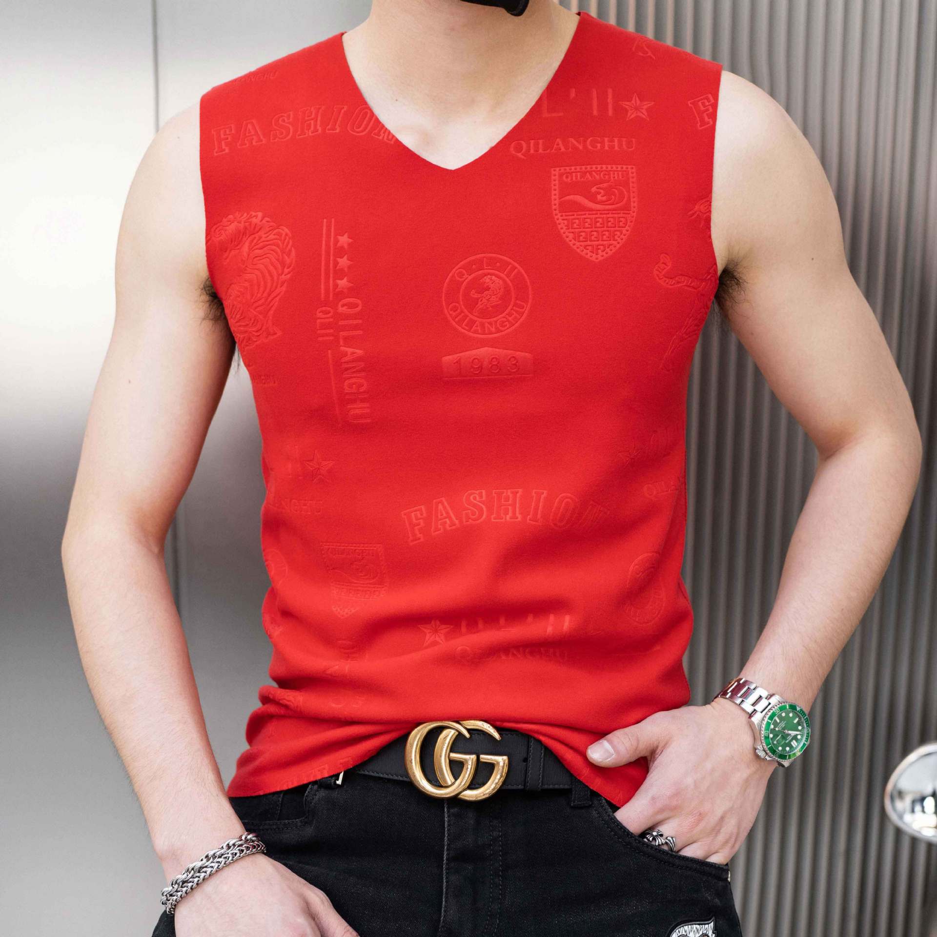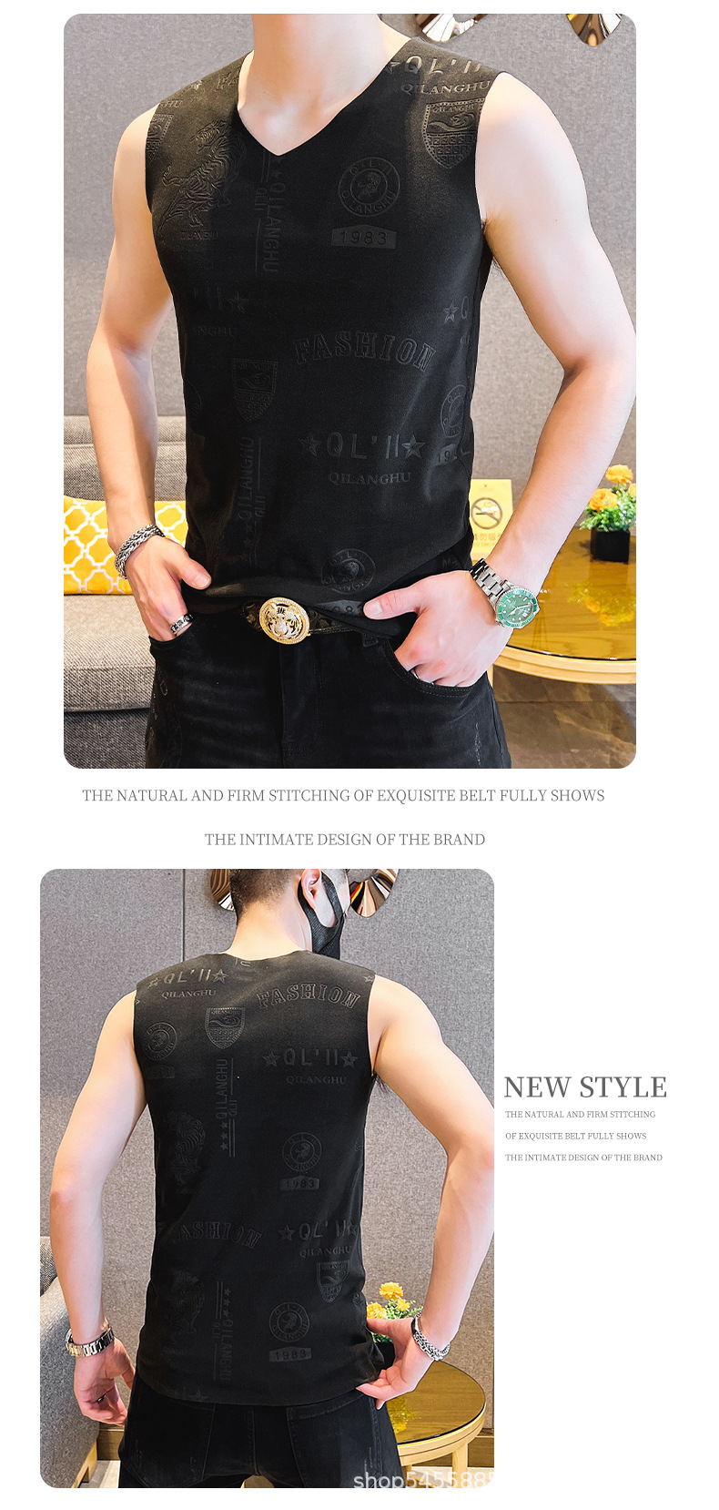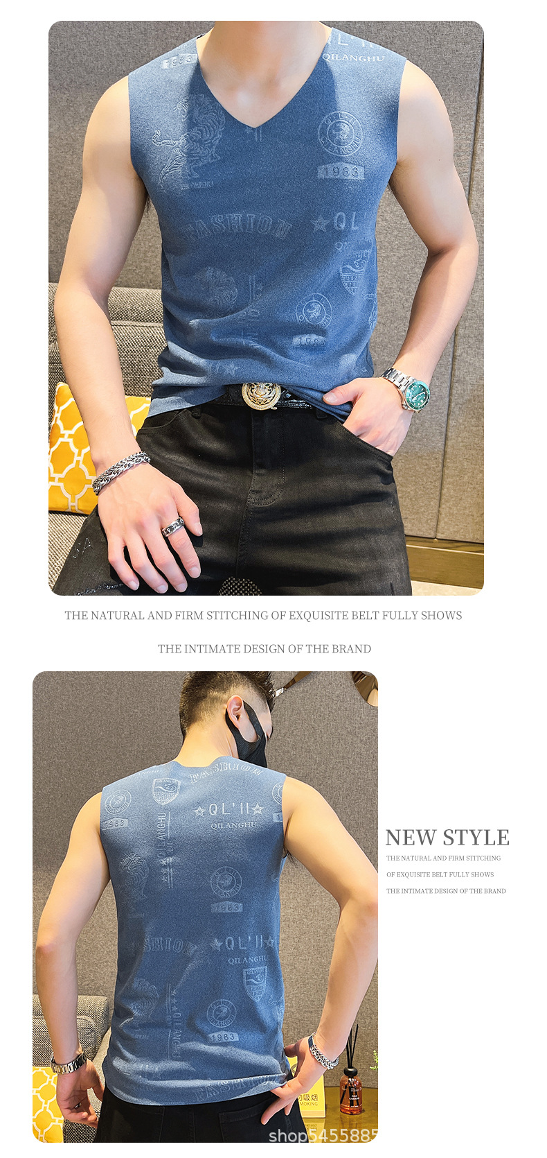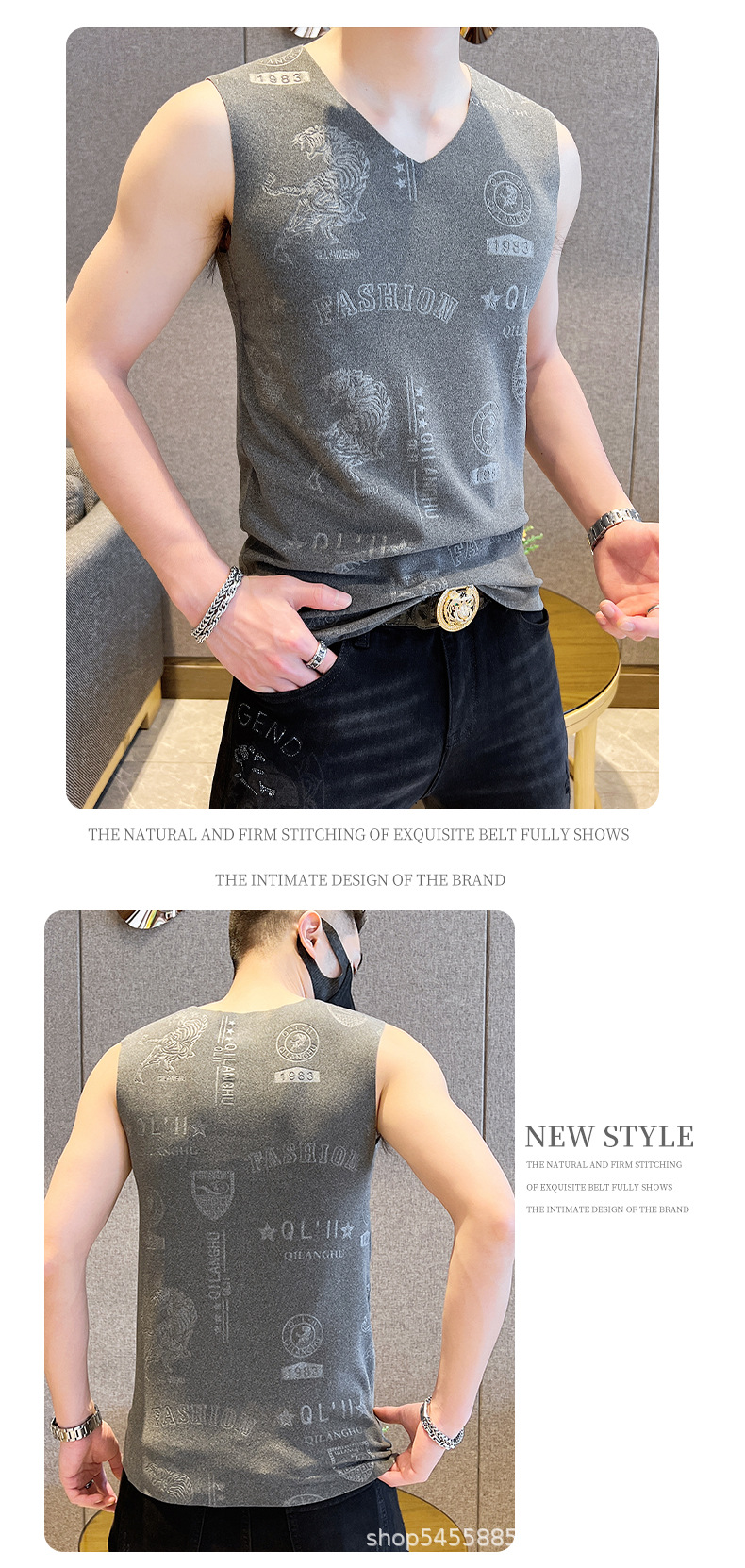 가을과 겨울 남성 추적 열 조끼 유행 엠보싱 기술 양면 양털 슬림핏 V-넥 베이스 조끼스토어 가기
