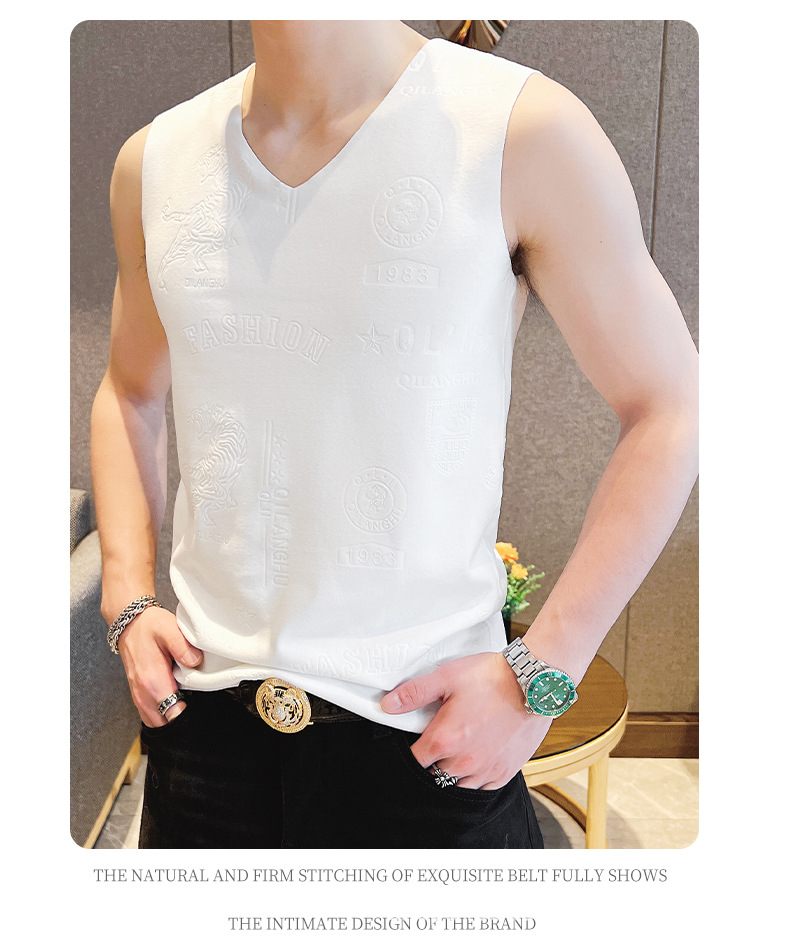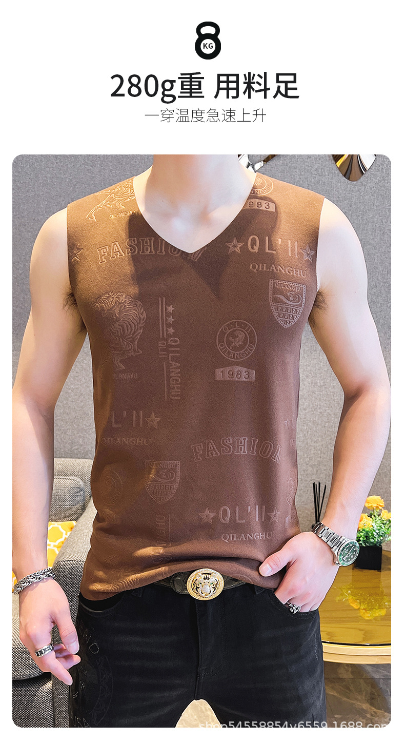 가을과 겨울 남성 추적 열 조끼 유행 엠보싱 기술 양면 양털 슬림핏 V-넥 베이스 조끼