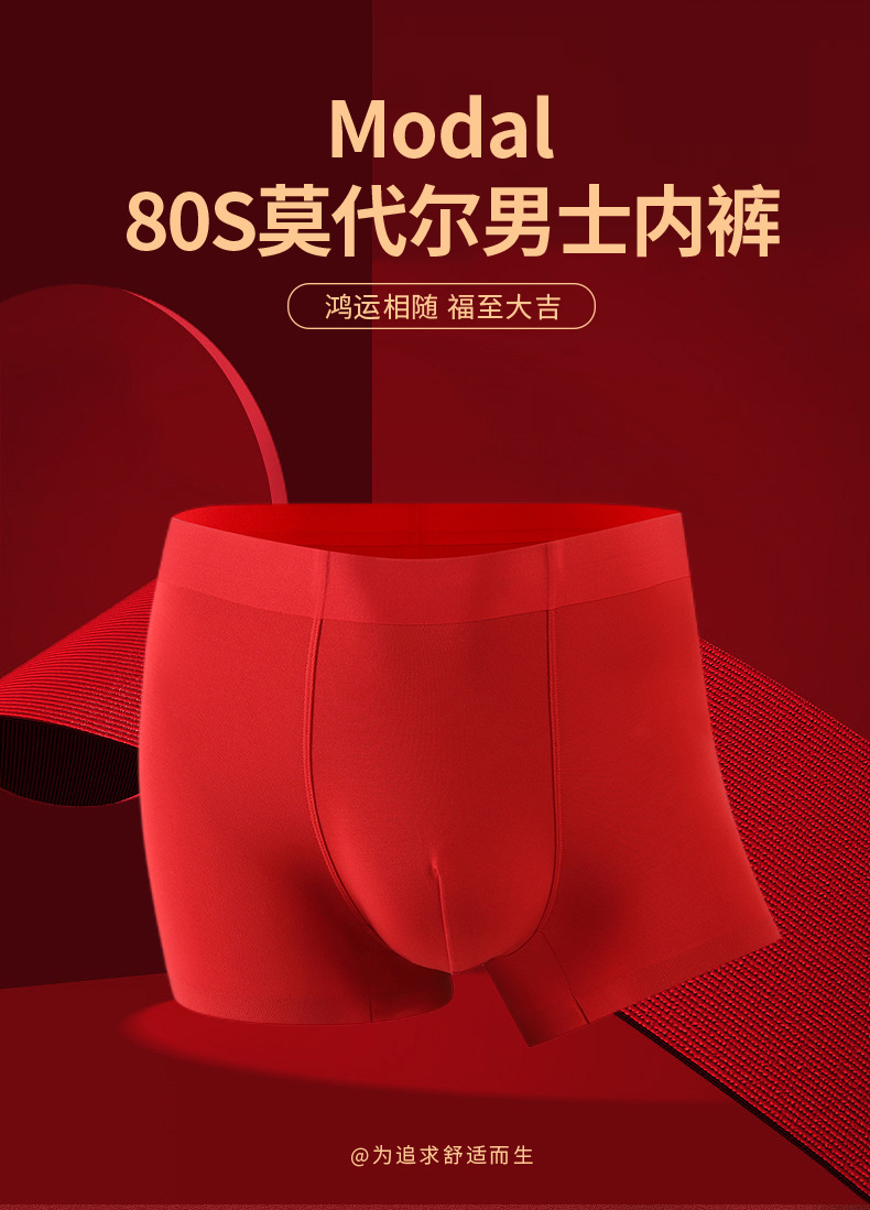 베밍니아 속옷 2023 토끼 새로운 빨간 속옷 80 모달 원활한 남성 속옷 선물 도매