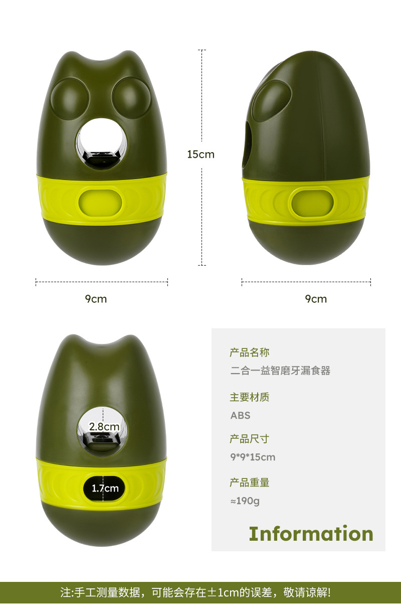 • 3성 고양이 자기 만족 식품 누출 장난감 녹색