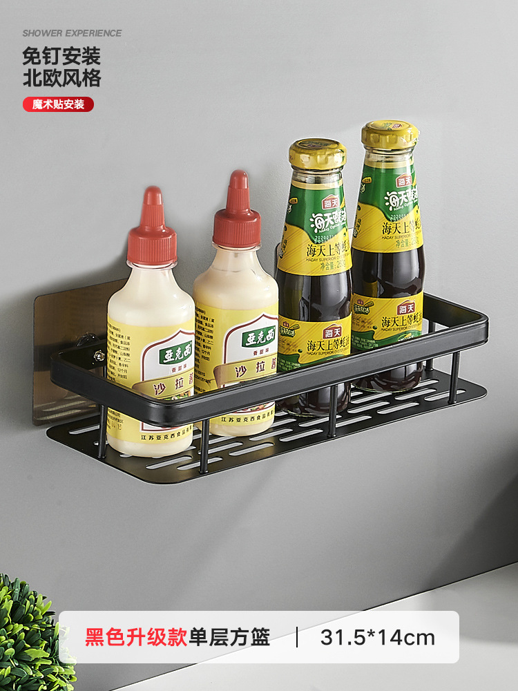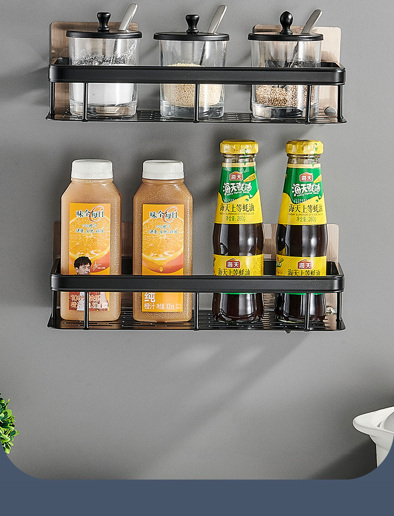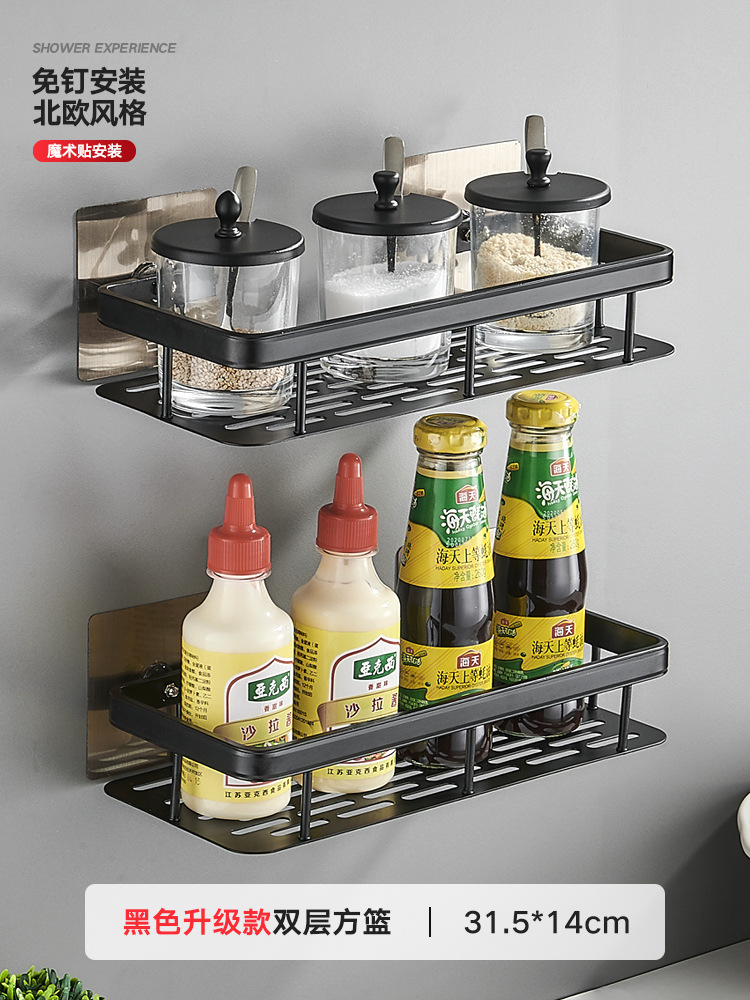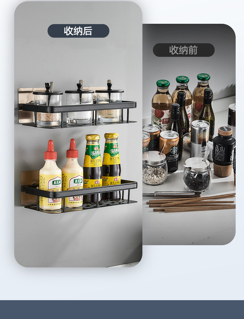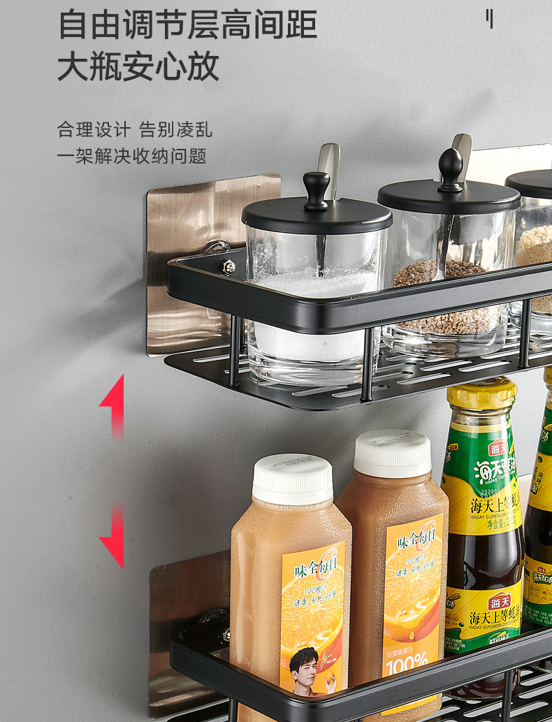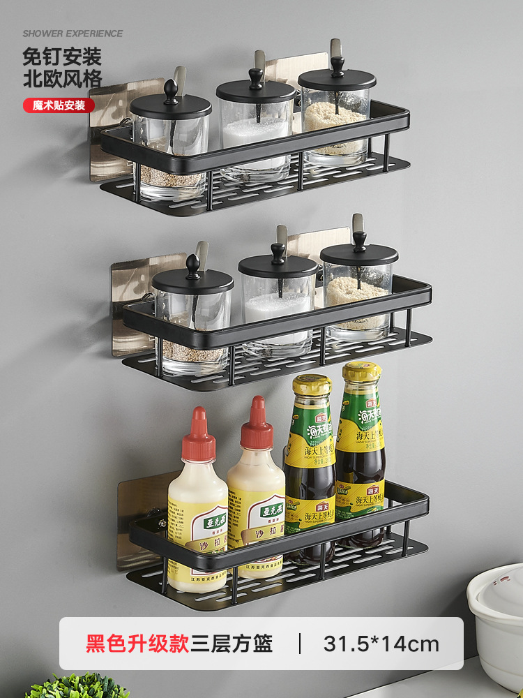 주방 수납 랙 펀치 프리 벽걸이 다기능 조미료 조미료 공급 오일, 소금, 소스 및 식초 보관 랙스토어 가기