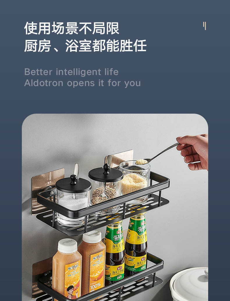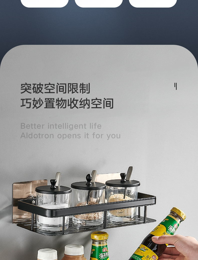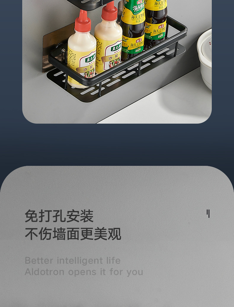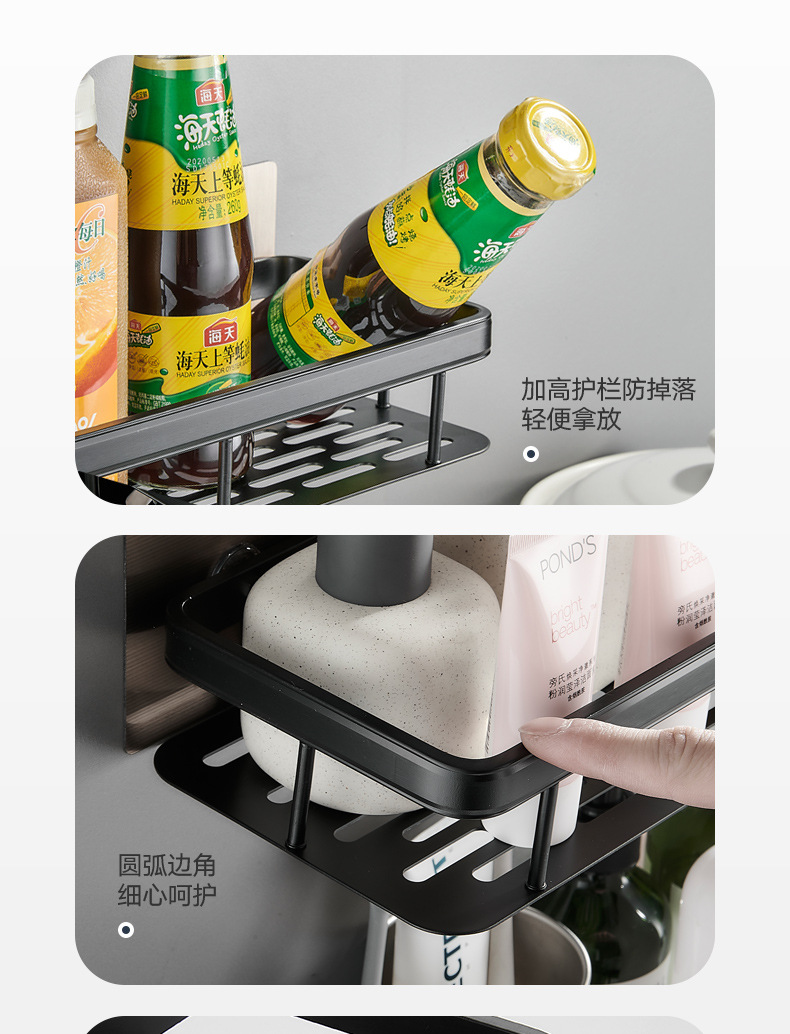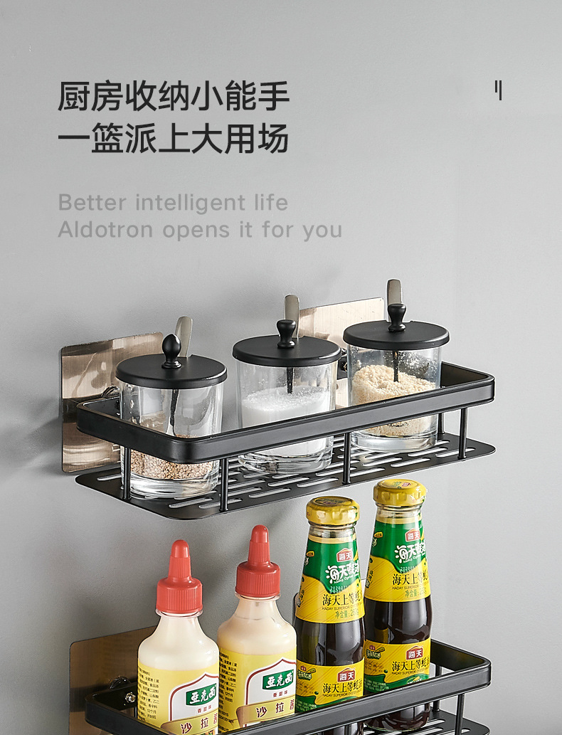 주방 수납 랙 펀치 프리 벽걸이 다기능 조미료 조미료 공급 오일, 소금, 소스 및 식초 보관 랙스토어 가기