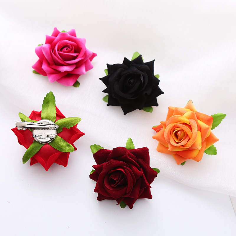 인기 판매 플란넬 장미 꽃 머리핀 머리 꽃 브로치 새해 신부 머리 꽃 코일 머리 꽃 가장자리 클립 인공 꽃 머리 장식