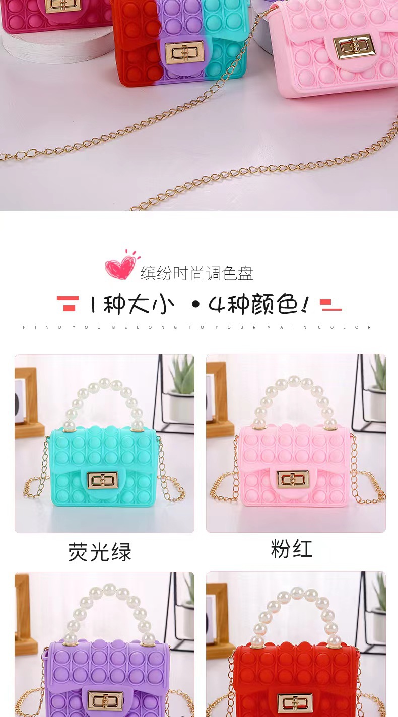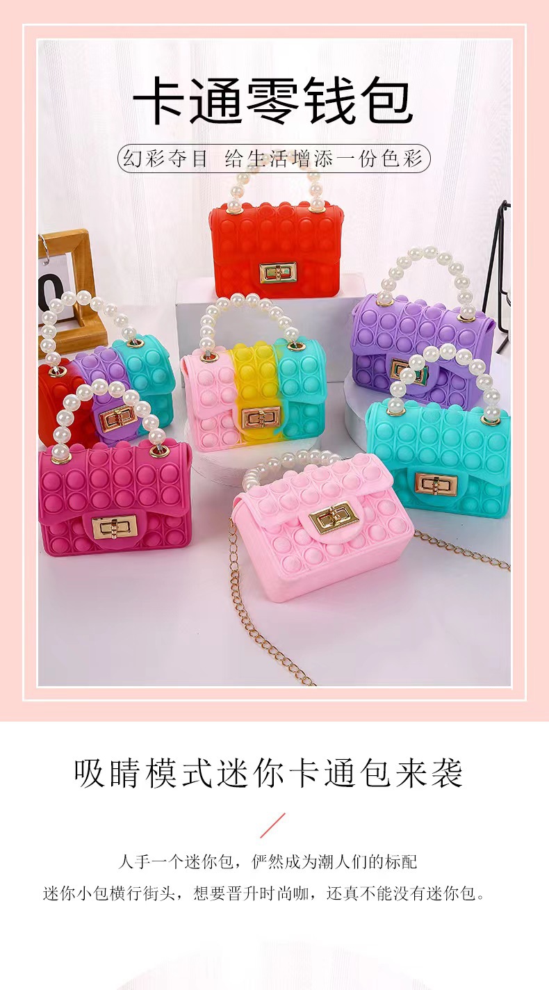 2024 새로운 실리콘 젤리 가방 어린이 크로스 바디 양면 버블 진주 핸드백 체인 실리콘 동전 지갑