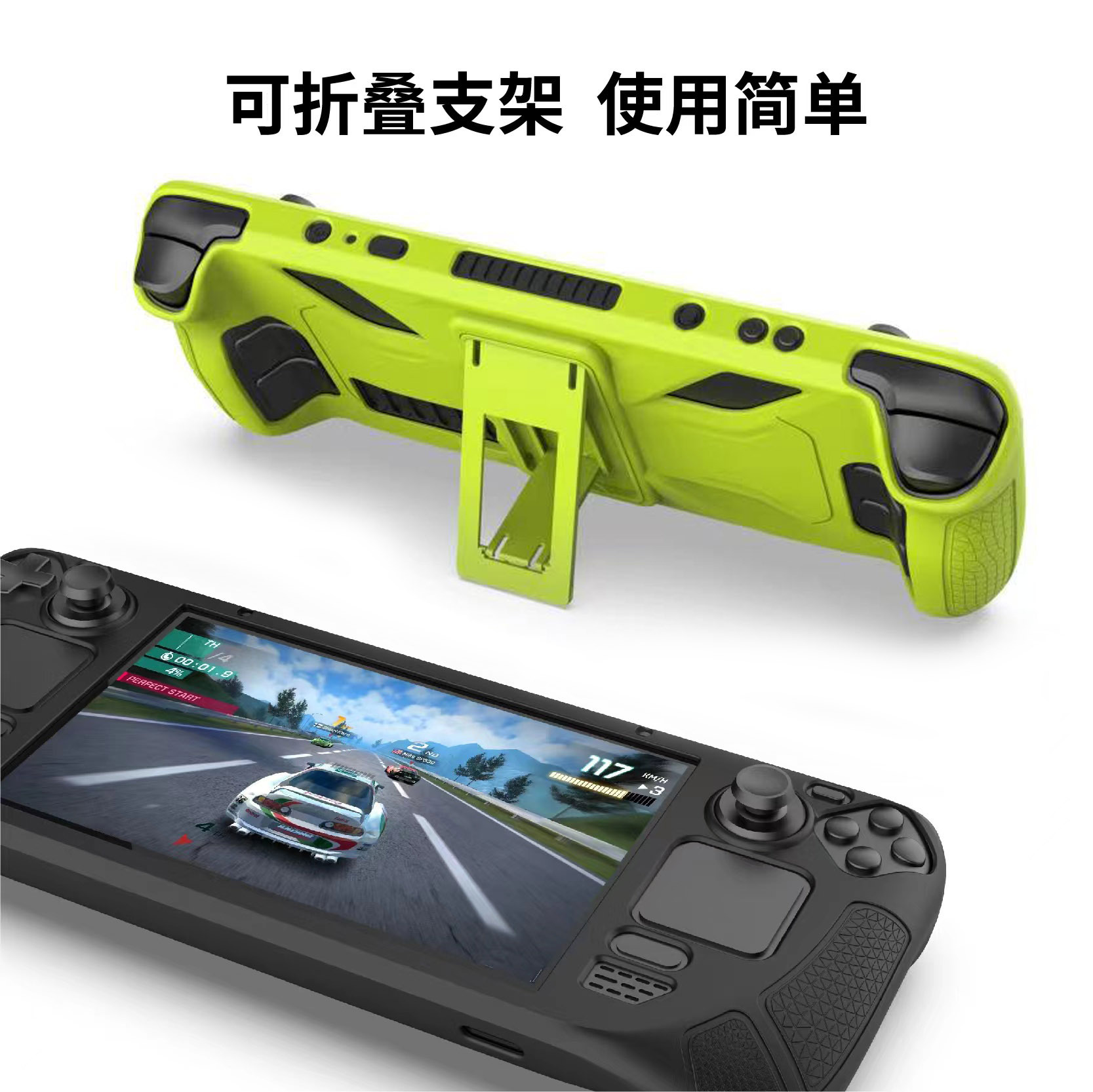 SteamDeck OLED 호스트 실리콘 커버 SteamDeck 브래킷이있는 휴대용 모든 것을 포함하는 실리콘 보호 커버