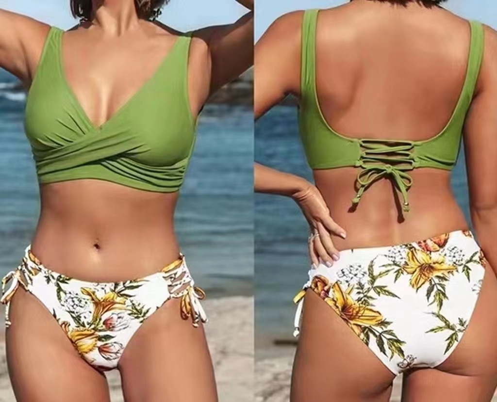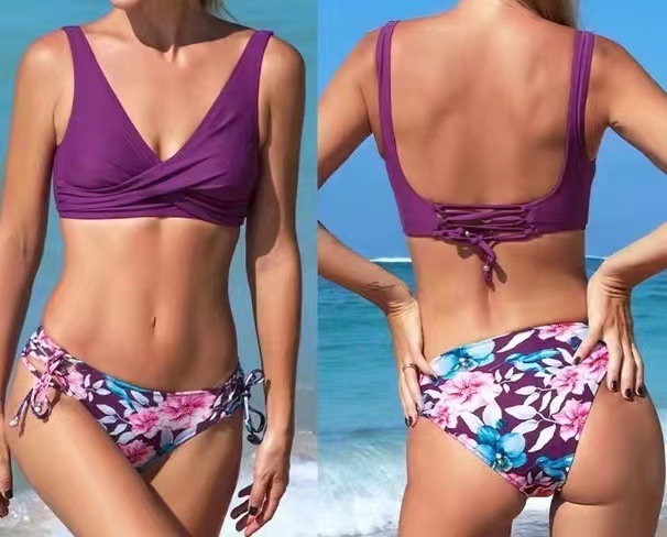 수영복 여성용 섹시 비키니 스트랩 푸시 업 3 점 슬림 스플릿 삼각형 휴가 온천 수영복