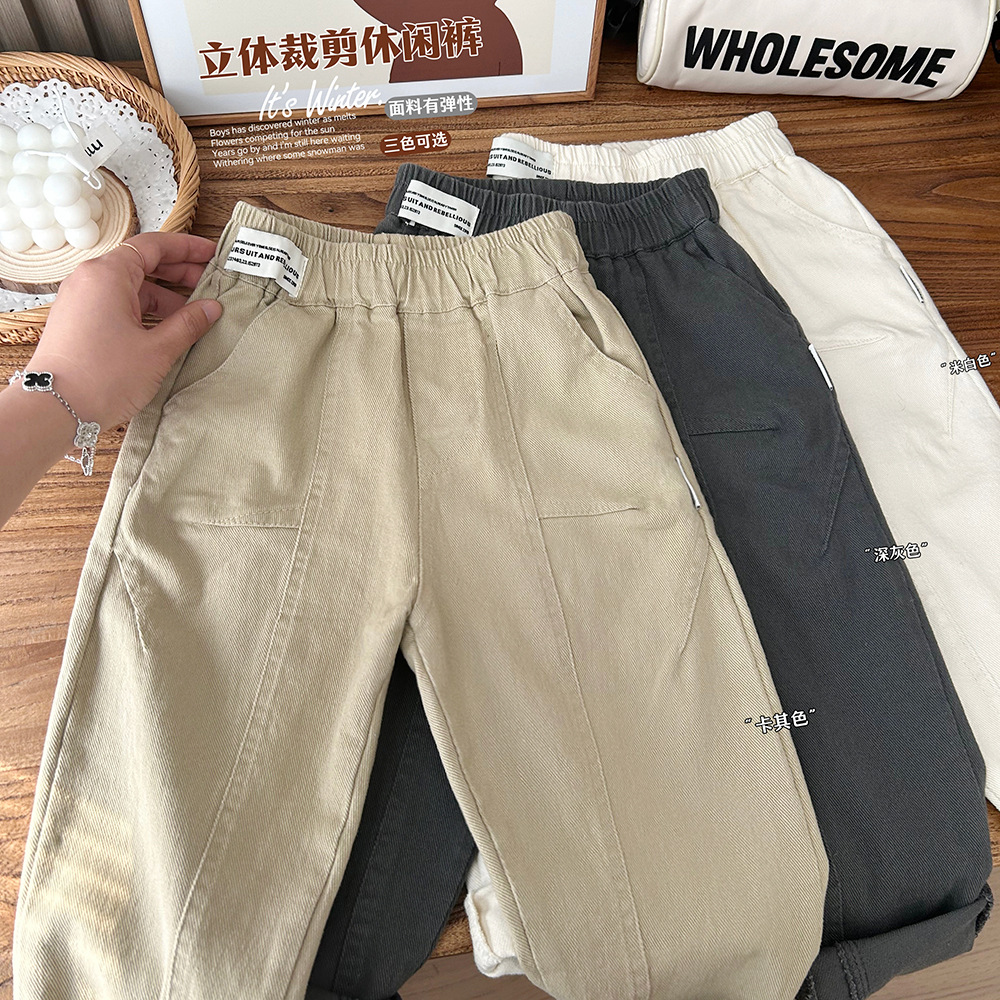 아동복 소년 캐주얼 바지 2025 봄, 가을 새로운 패션 느슨한 탄성 스타일 중대형 아동 바지 유행스토어 가기