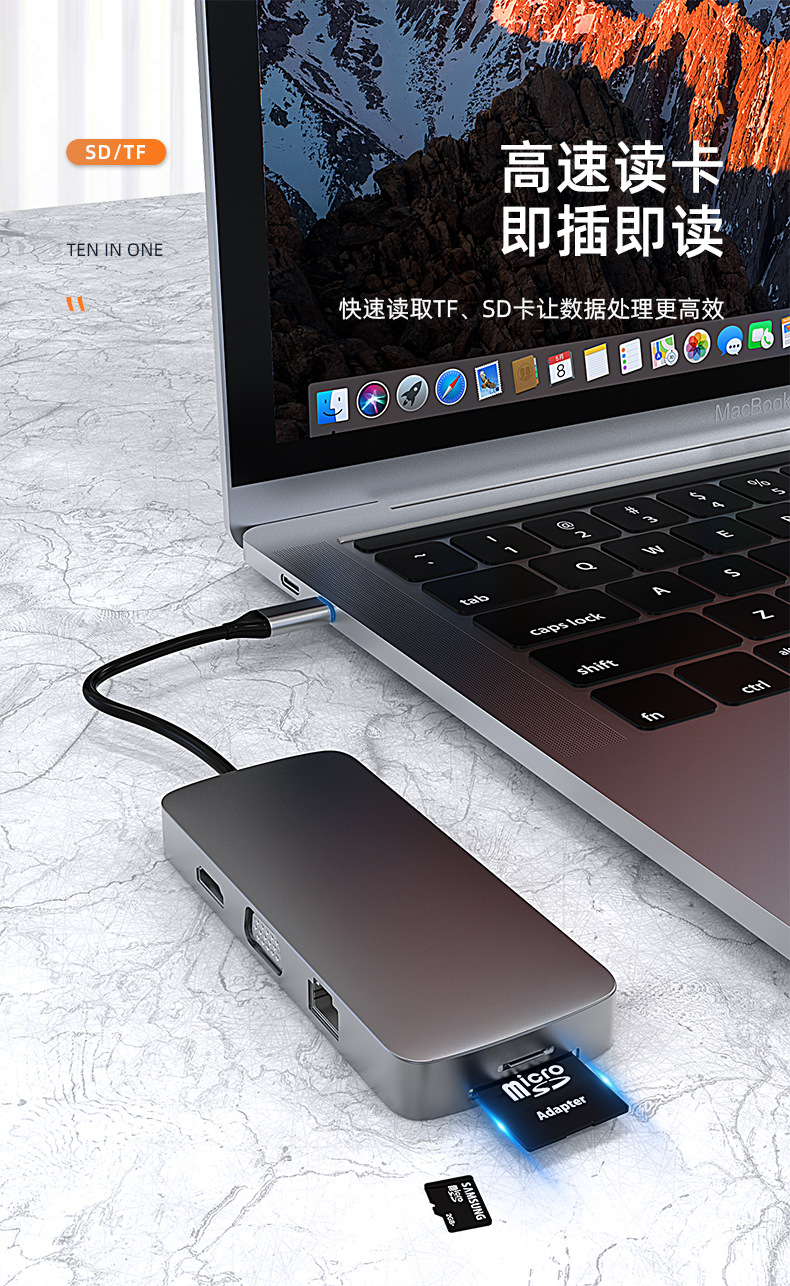 공장 재고 유형-C 도킹 스테이션 USB 허브 허브 10 에서 1 노트북 USB3.0 도킹 스테이션 RJ45