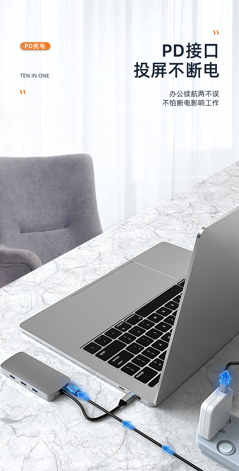 공장 재고 유형-C 도킹 스테이션 USB 허브 허브 10 에서 1 노트북 USB3.0 도킹 스테이션 RJ45스토어 가기