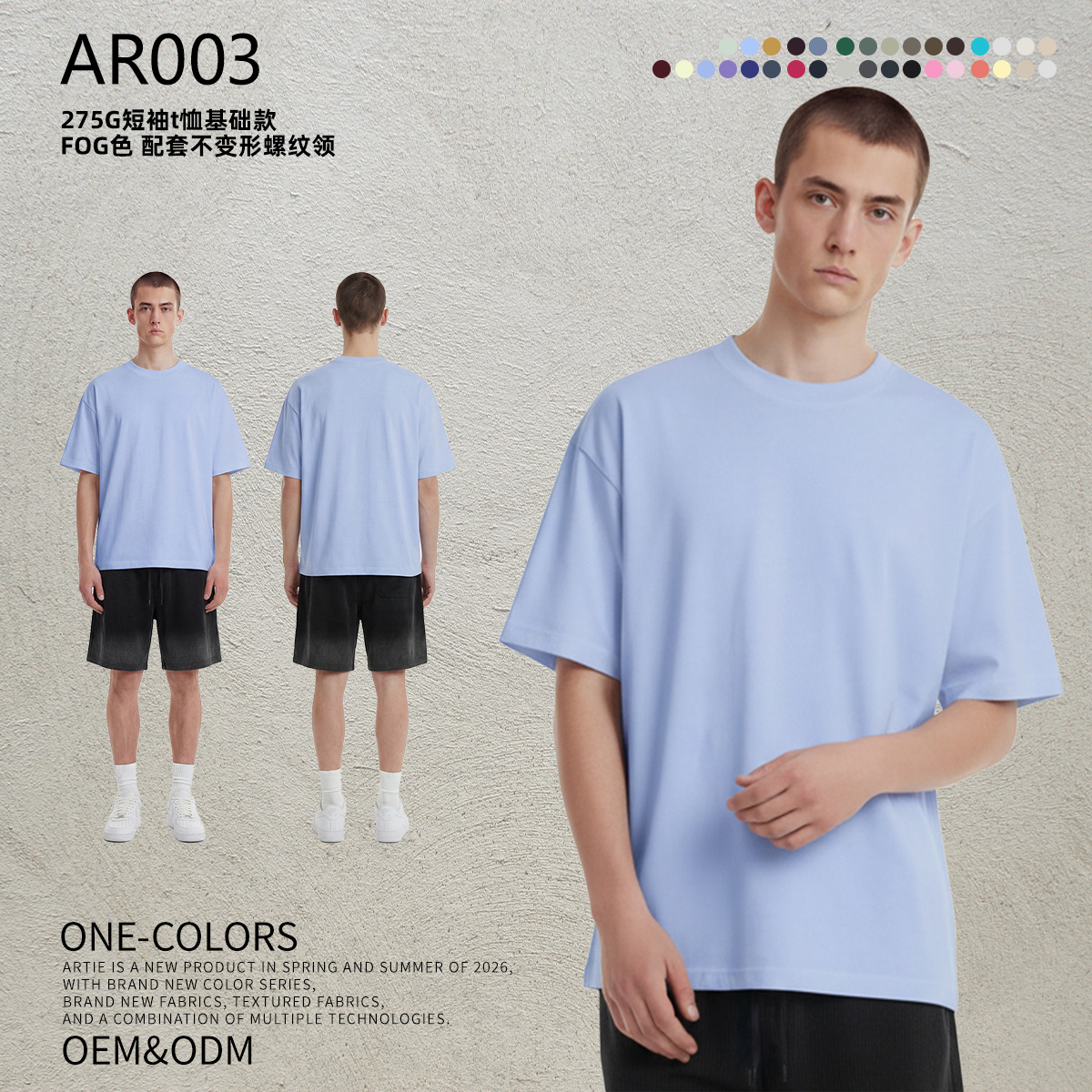 ARTIE 남성복 275g 지구 색상 느슨한 짧은 소매 미국 솔리드 컬러 티셔츠 FOG 퓨어 코튼 남성 패션 브랜드 티셔츠스토어 가기