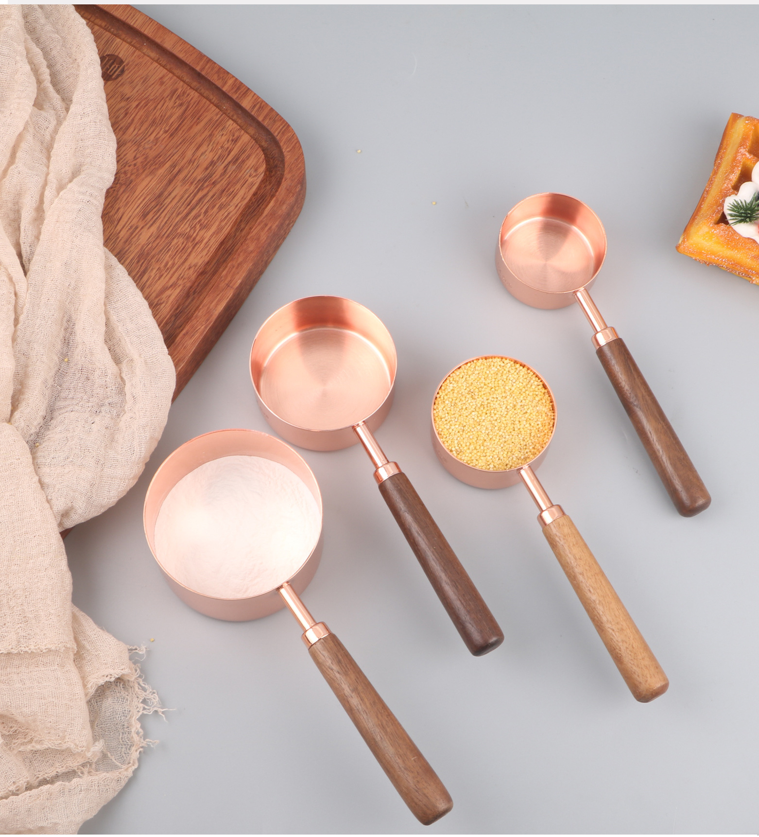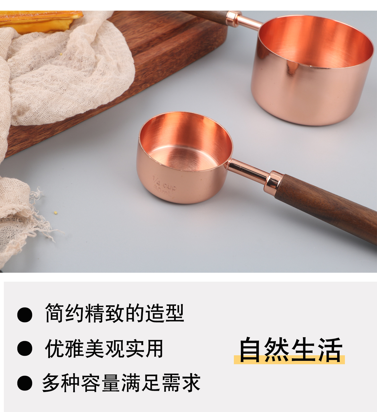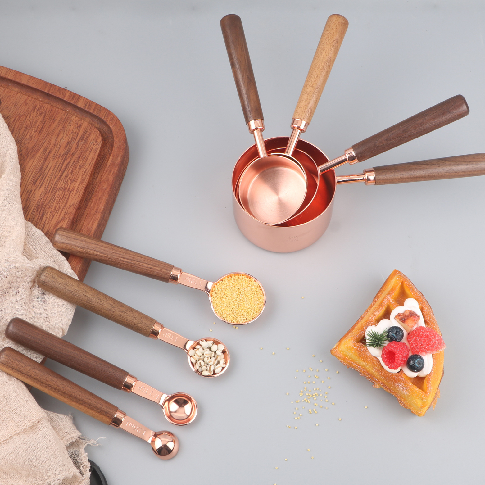 스테인레스 스틸 계량 스푼 8 종 세트 호두 손잡이 로즈 골드 가정용 주방 베이킹 15ml 졸업 계량 컵 스푼