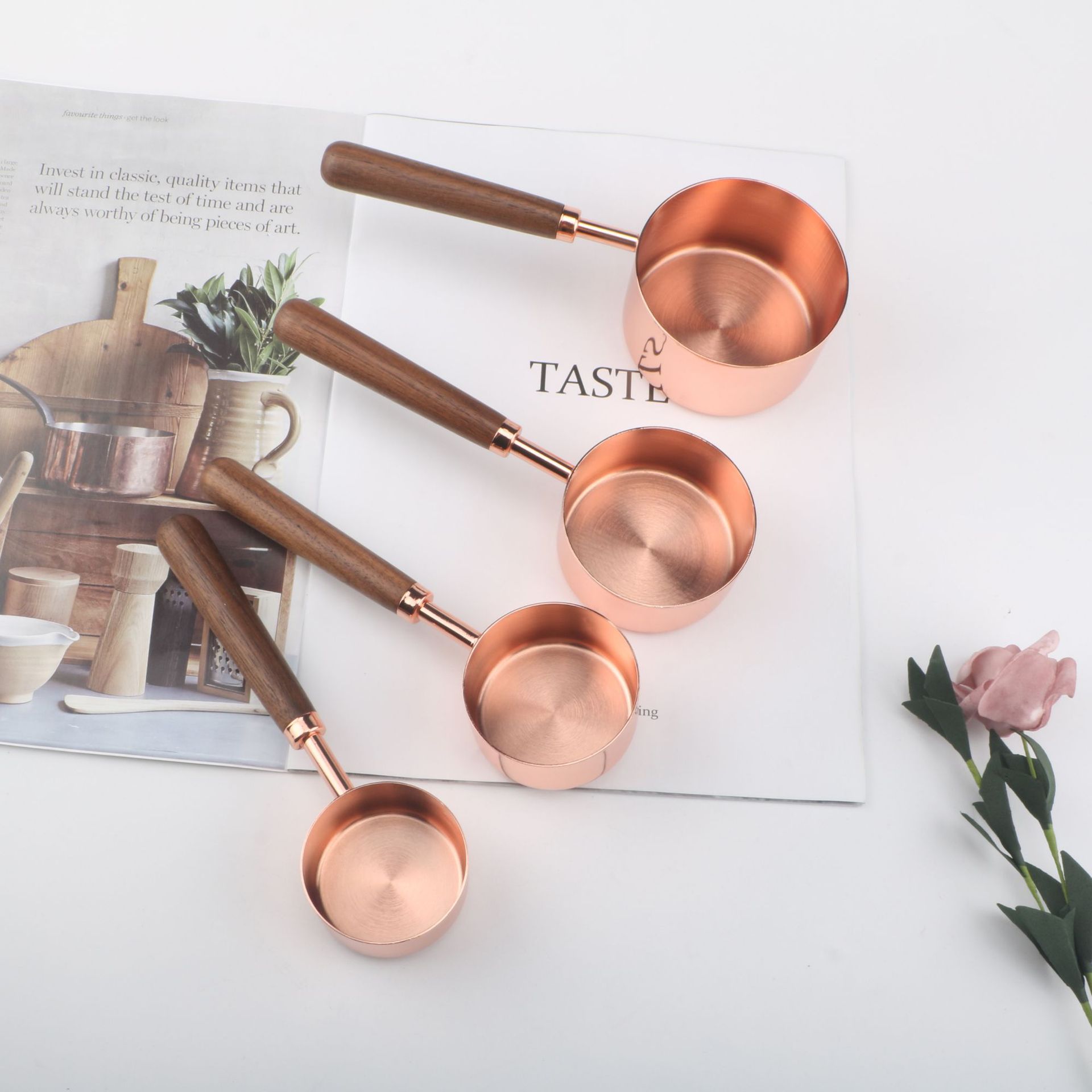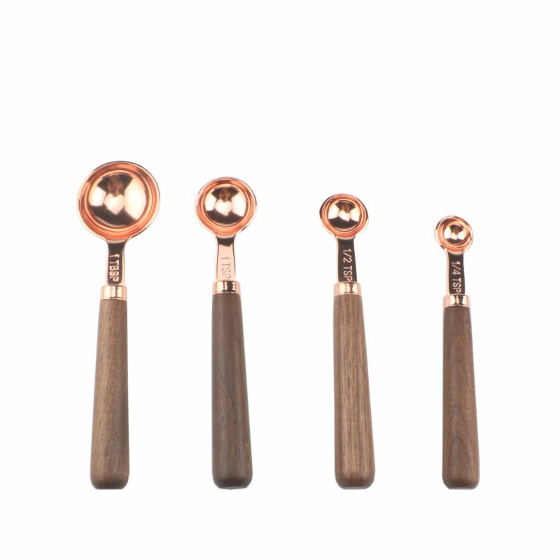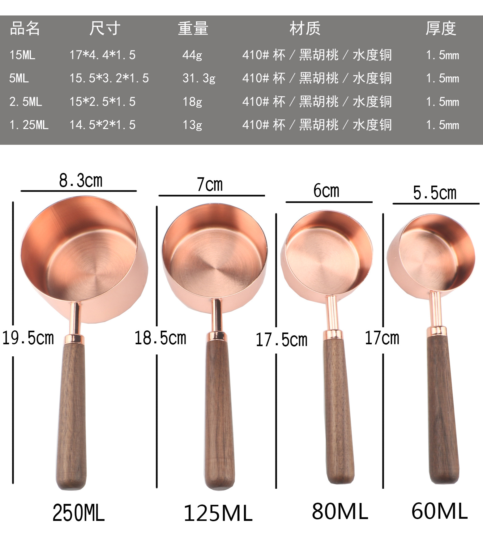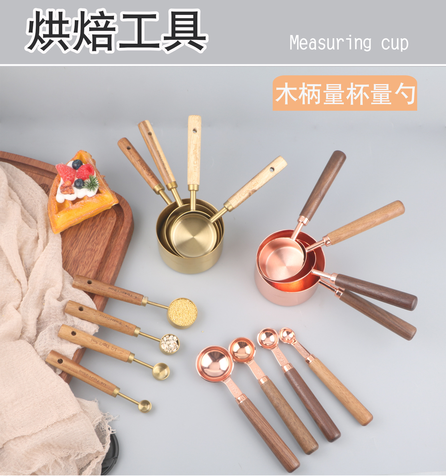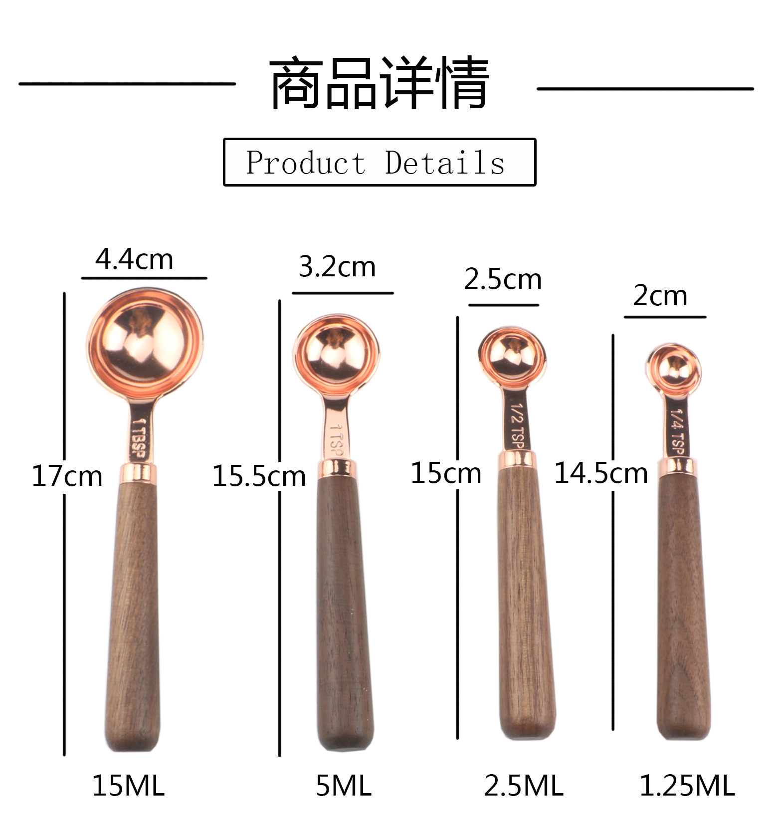스테인레스 스틸 계량 스푼 8 종 세트 호두 손잡이 로즈 골드 가정용 주방 베이킹 15ml 졸업 계량 컵 스푼스토어 가기