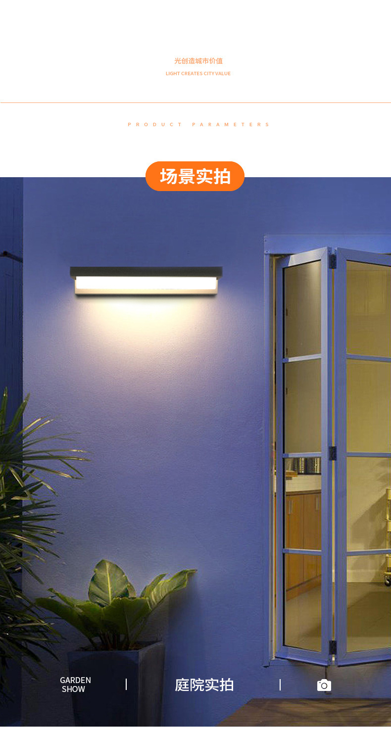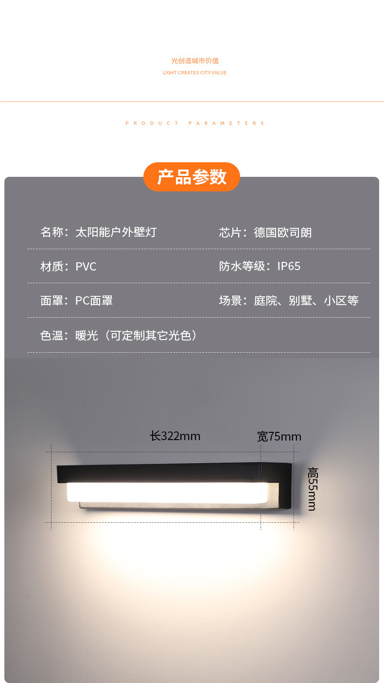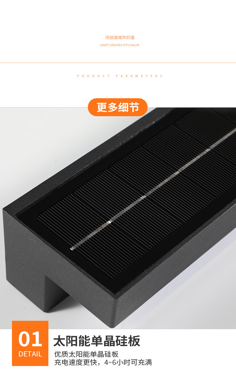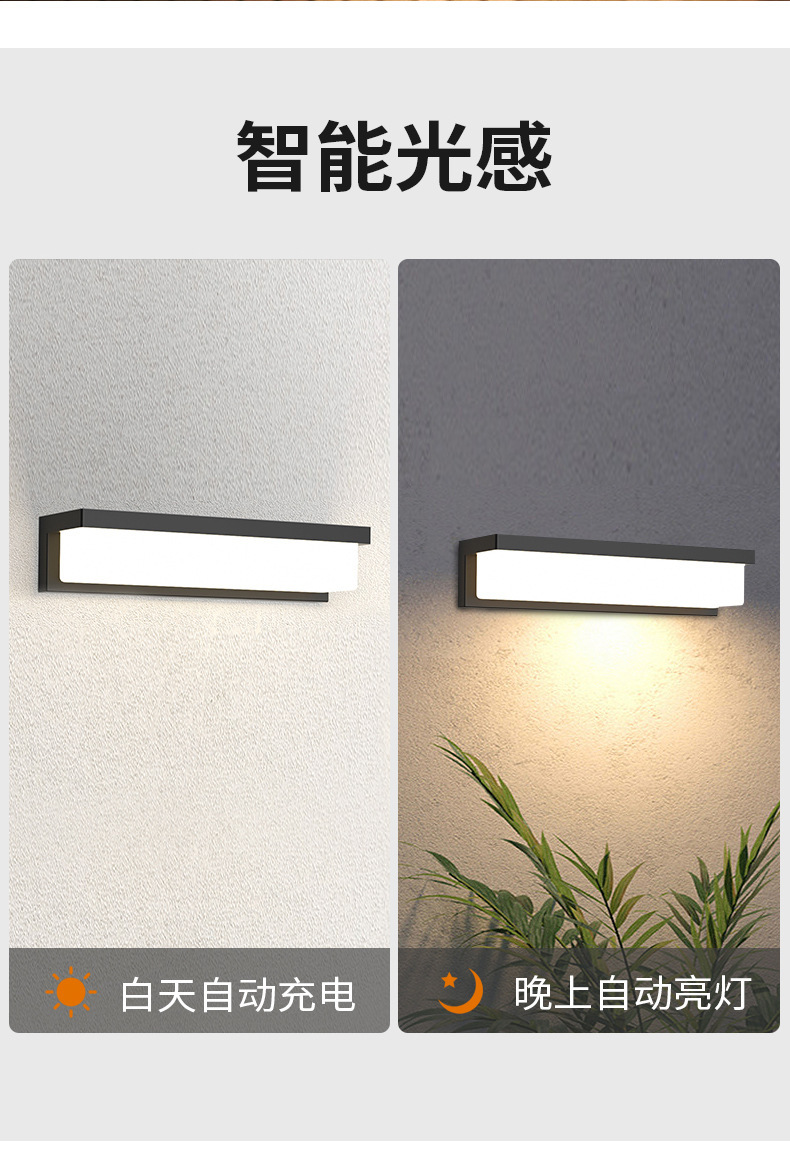 太阳能壁灯户外防水人体感应庭院灯别墅景观现代方形简约LED壁灯
