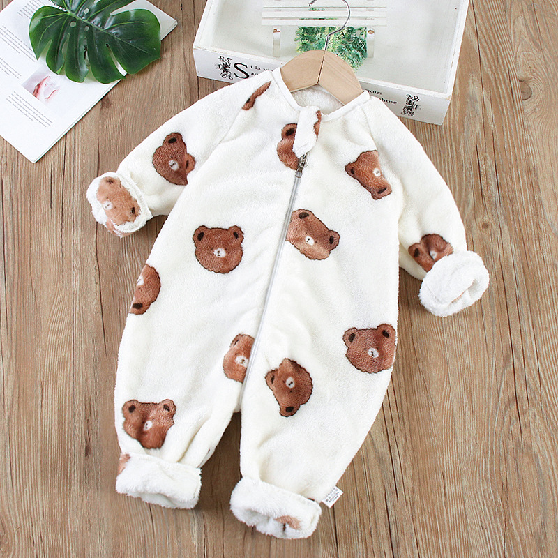 • 곰 머리 전체에 프린트된 단층 플란넬 점프수트