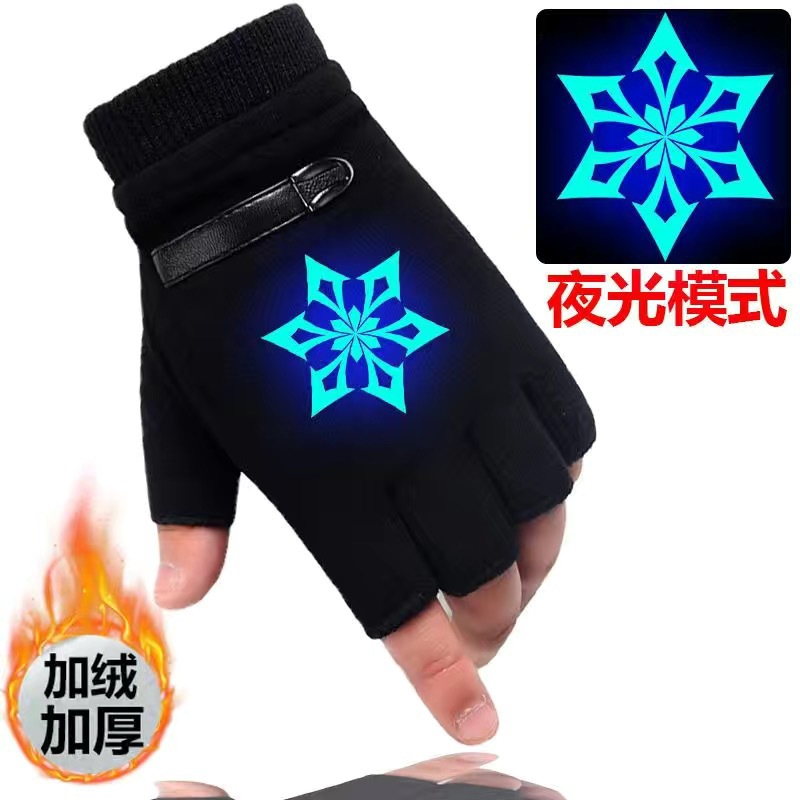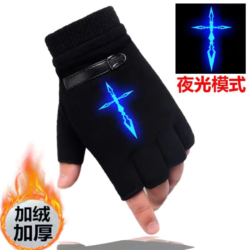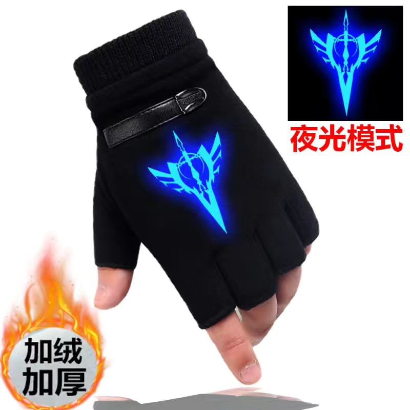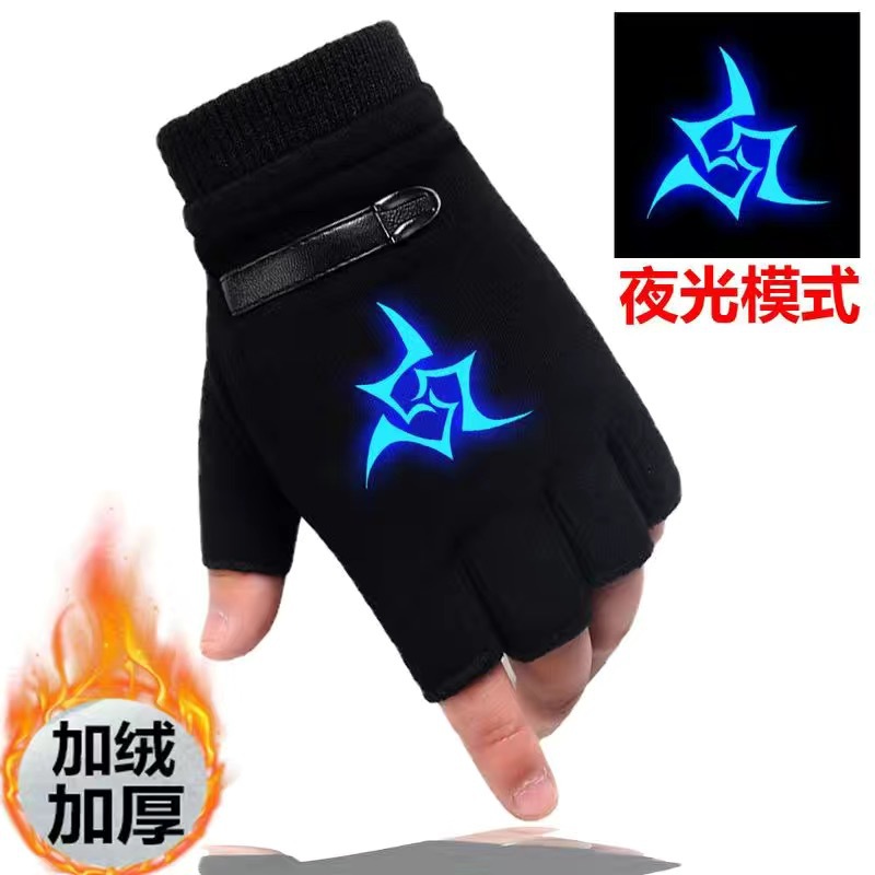 야광 방한 애니메이션 어린이 장갑 겨울 남아용 글쓰기 반장갑 큰 아이용 플러스 벨벳 보온 학생 남아용 장갑