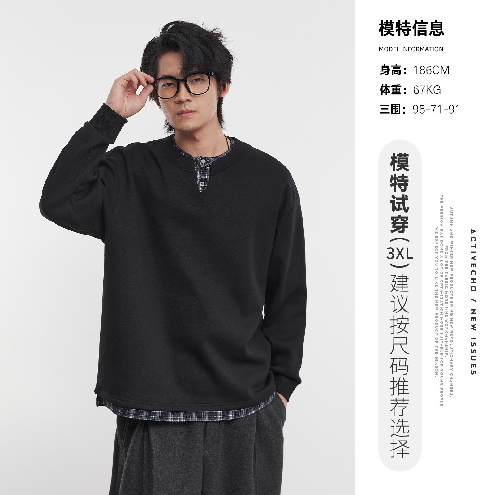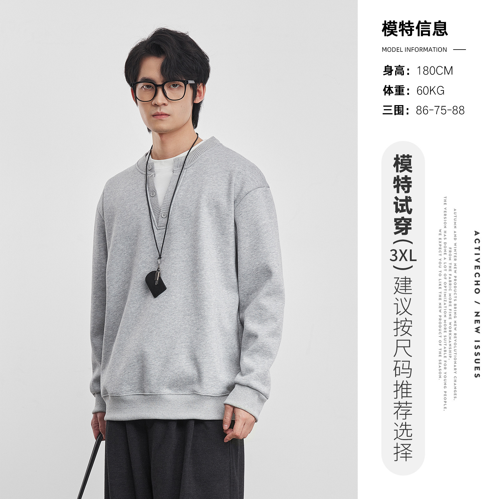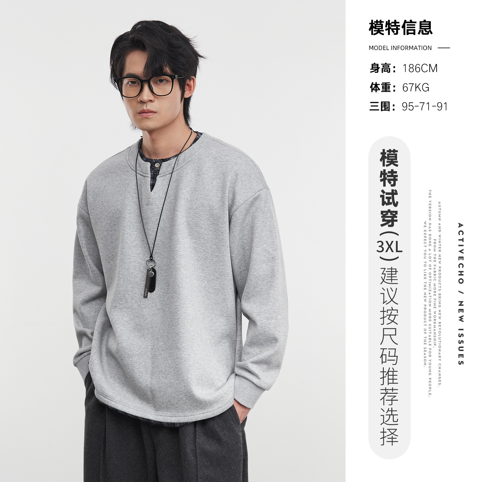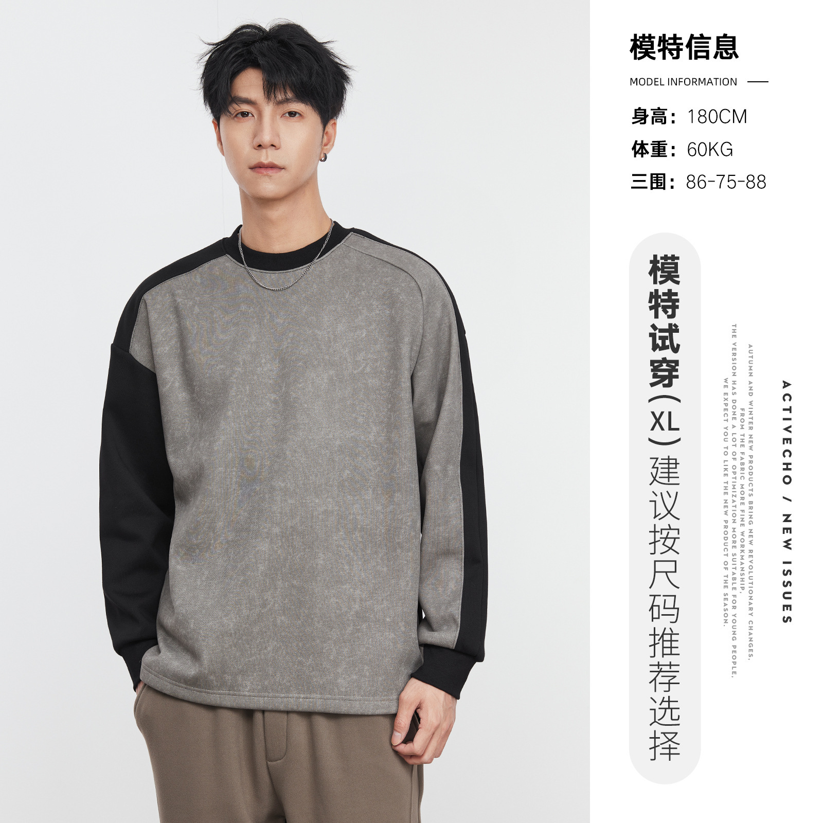 【69위안 1개】트렌디 브랜드 스웨트셔츠/남성용 라운드넥 스웨트셔츠 복주머니 스타일 선택 가능 남성복 스웨트셔츠스토어 가기