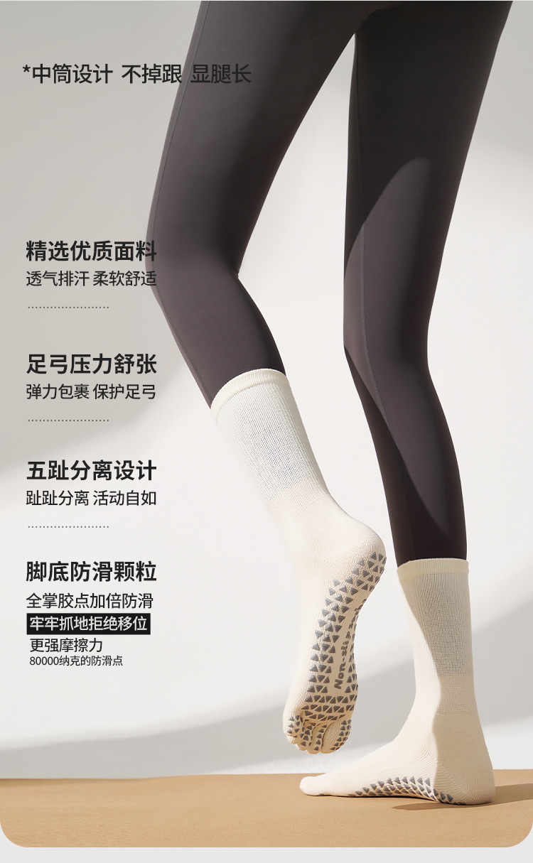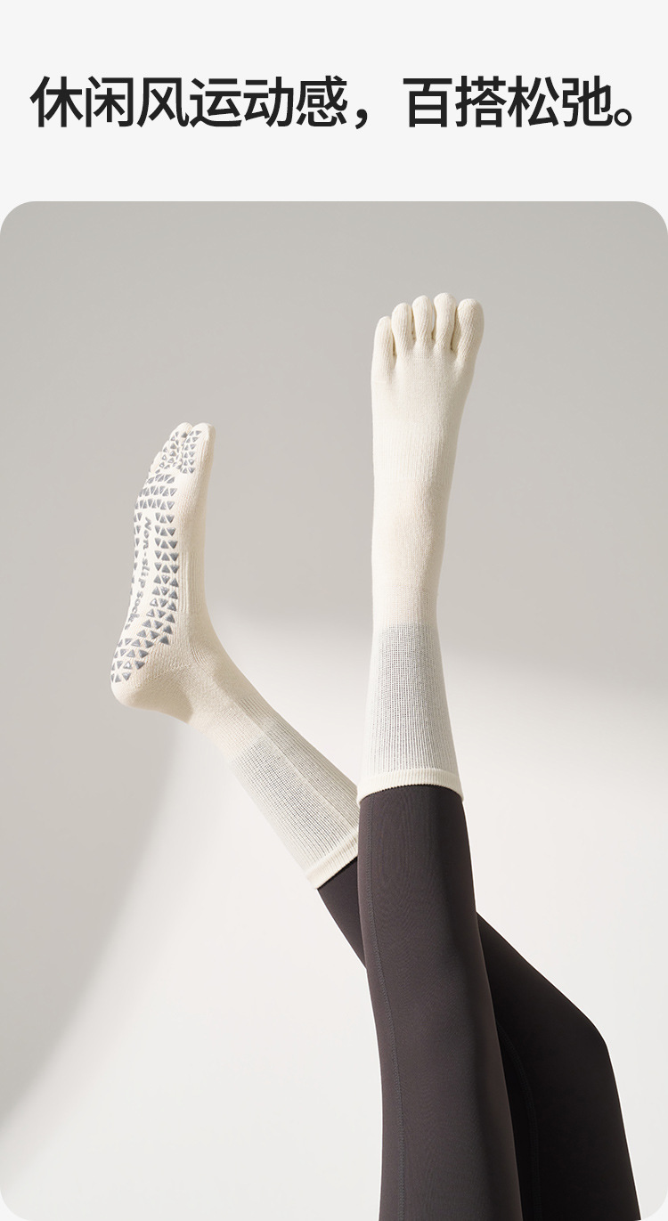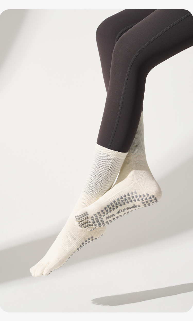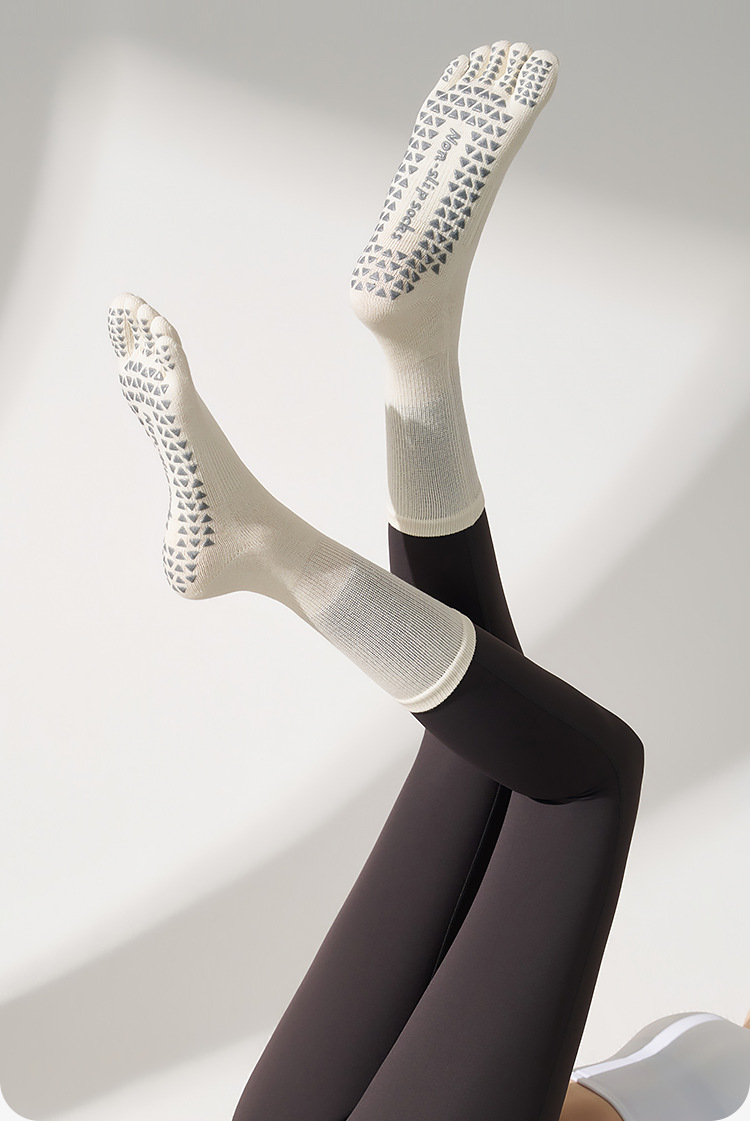 봄철 여성용 중간 길이 요가 양말, 전문가용 미끄럼 방지 5손가락 양말, 필라테스 전용 스포츠 압박 피트니스 분리형 발가락 양말스토어 가기