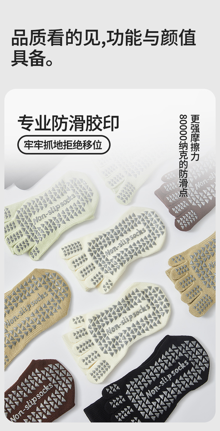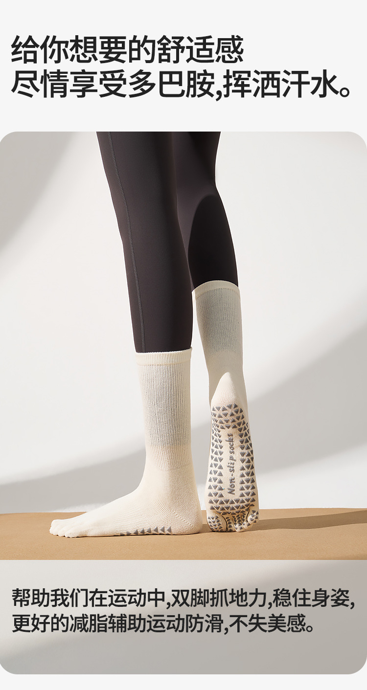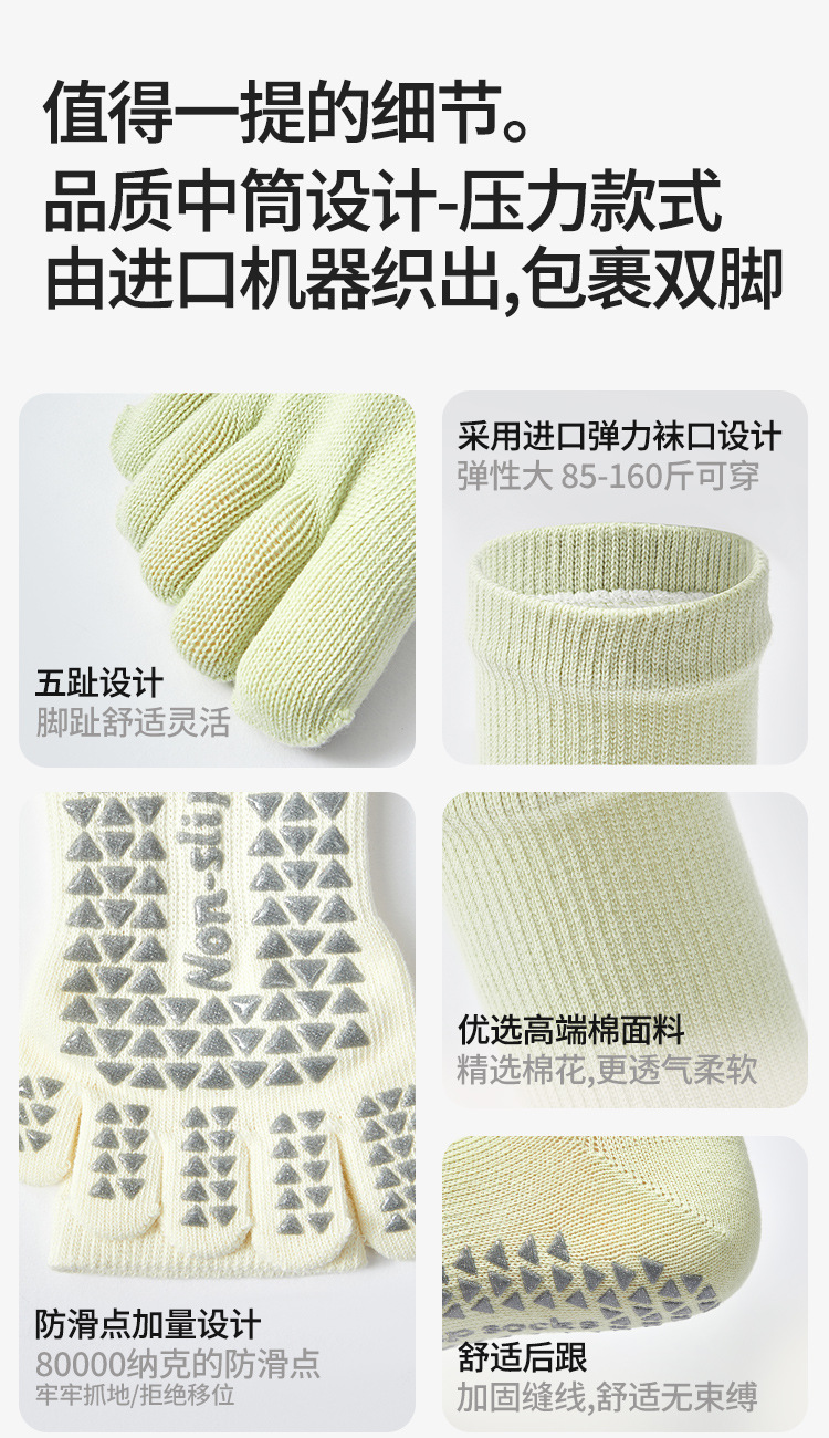 봄철 여성용 중간 길이 요가 양말, 전문가용 미끄럼 방지 5손가락 양말, 필라테스 전용 스포츠 압박 피트니스 분리형 발가락 양말스토어 가기