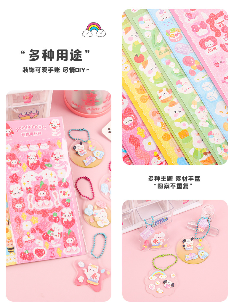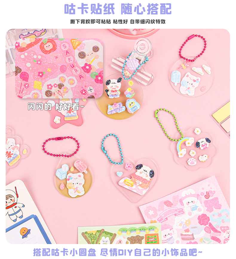 레이저 goo 카드 스티커 소녀 심장 손 계정 스티커 재료 DIY 방수 귀여운 만화 goo 카드 장식 스티커 도매