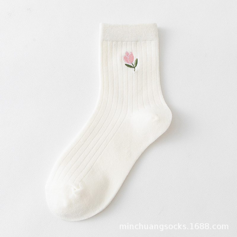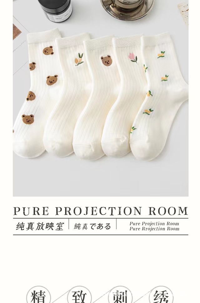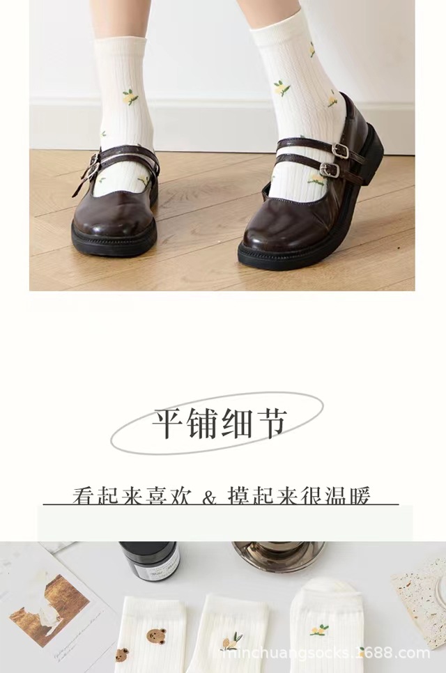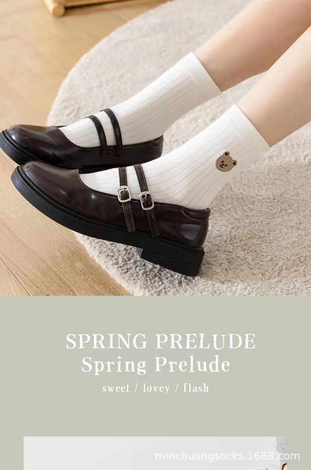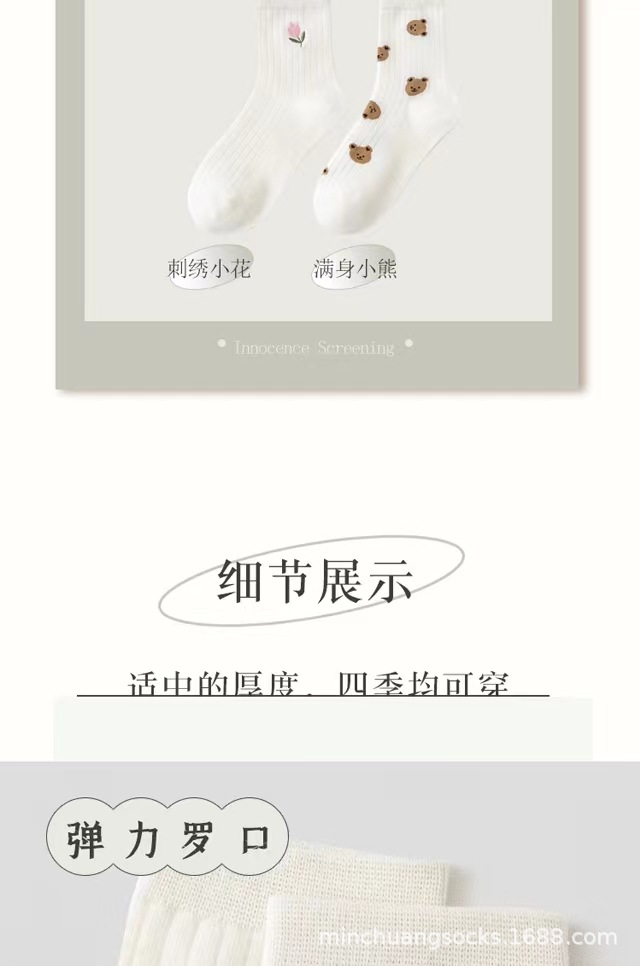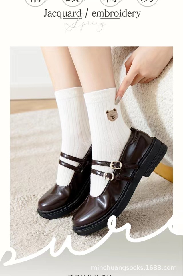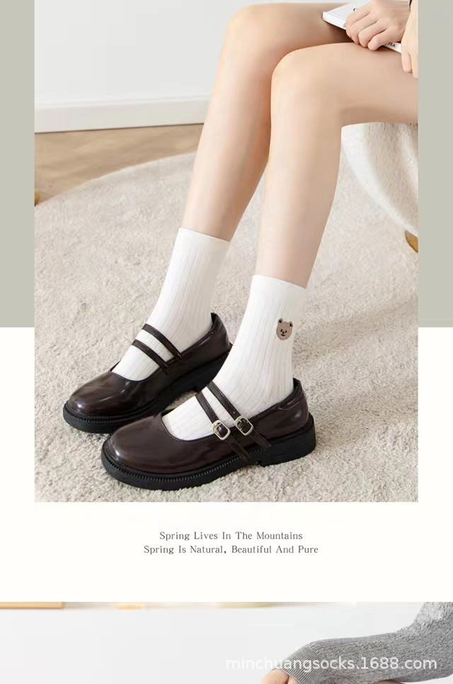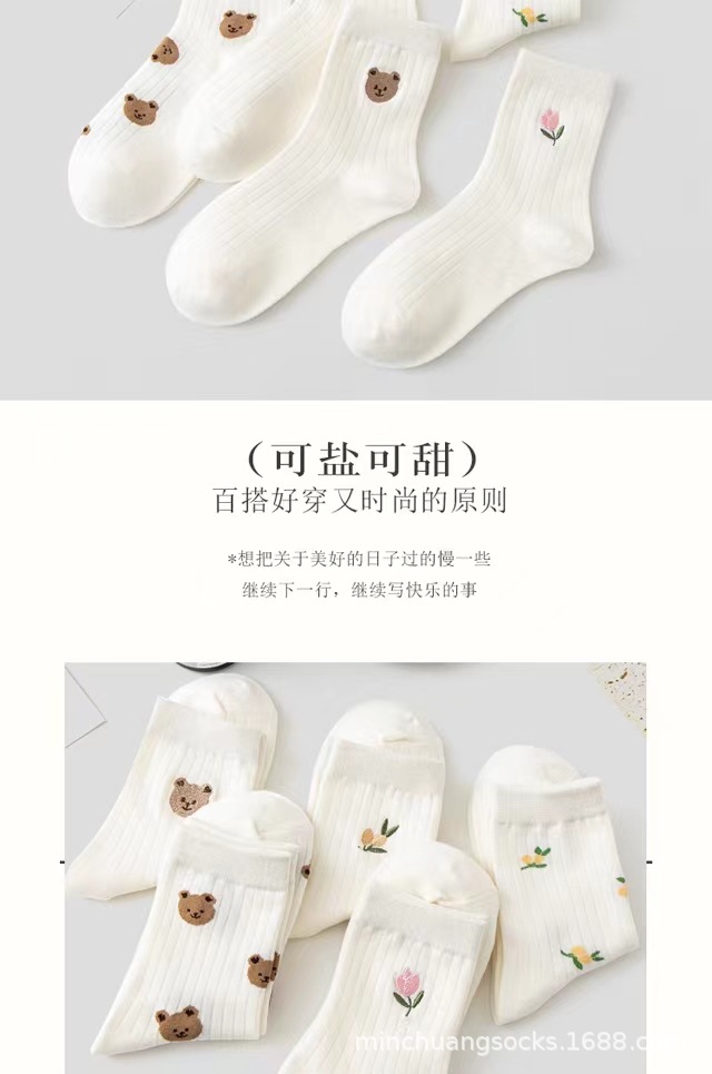 양말 여자의 가을과 겨울 일본식 귀여운 자수 곰 흰색 중간 양말 대학 스타일 소녀 jk 면 양말 유행스토어 가기