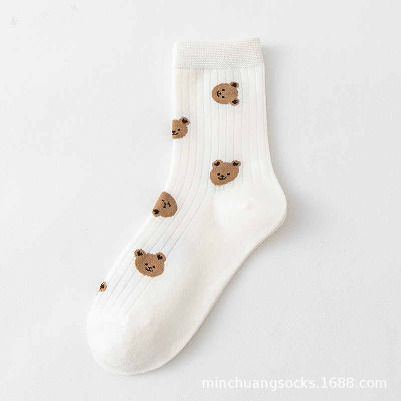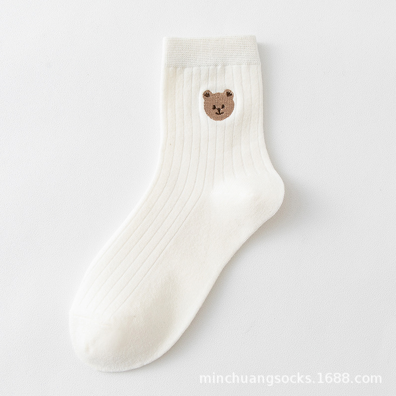양말 여자의 가을과 겨울 일본식 귀여운 자수 곰 흰색 중간 양말 대학 스타일 소녀 jk 면 양말 유행