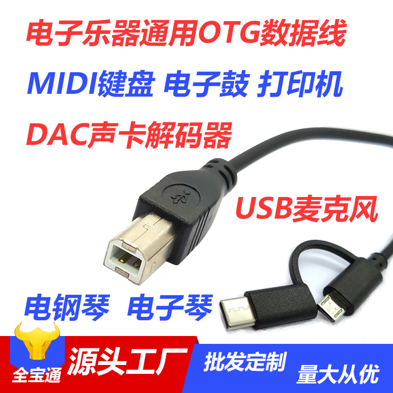 产品用途:苹果/Micro usb/Type-C接口手机连接USB-B接口电钢琴、声卡、电子鼓