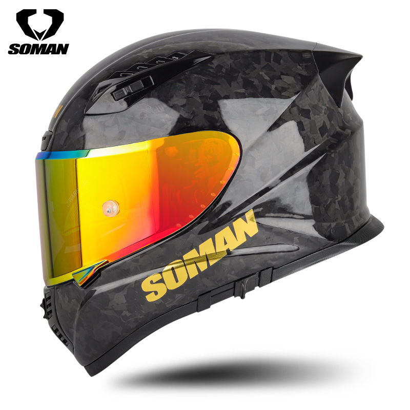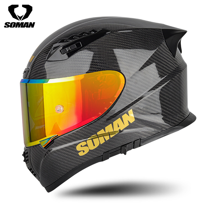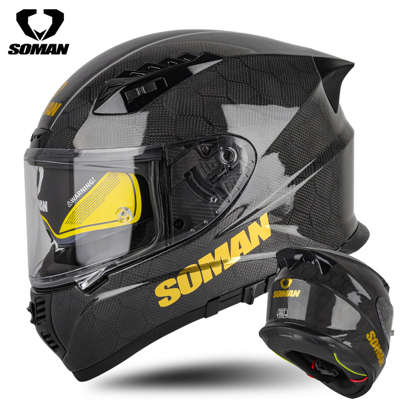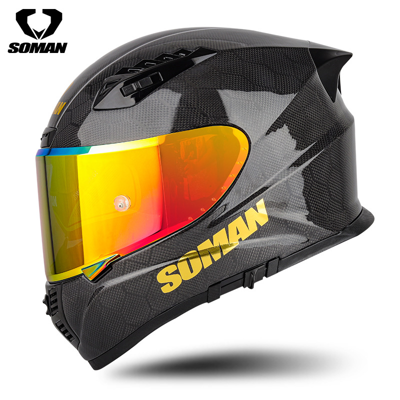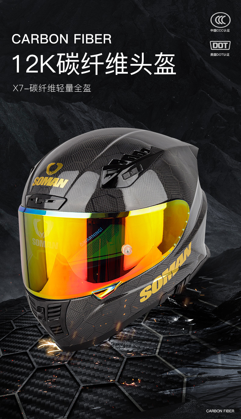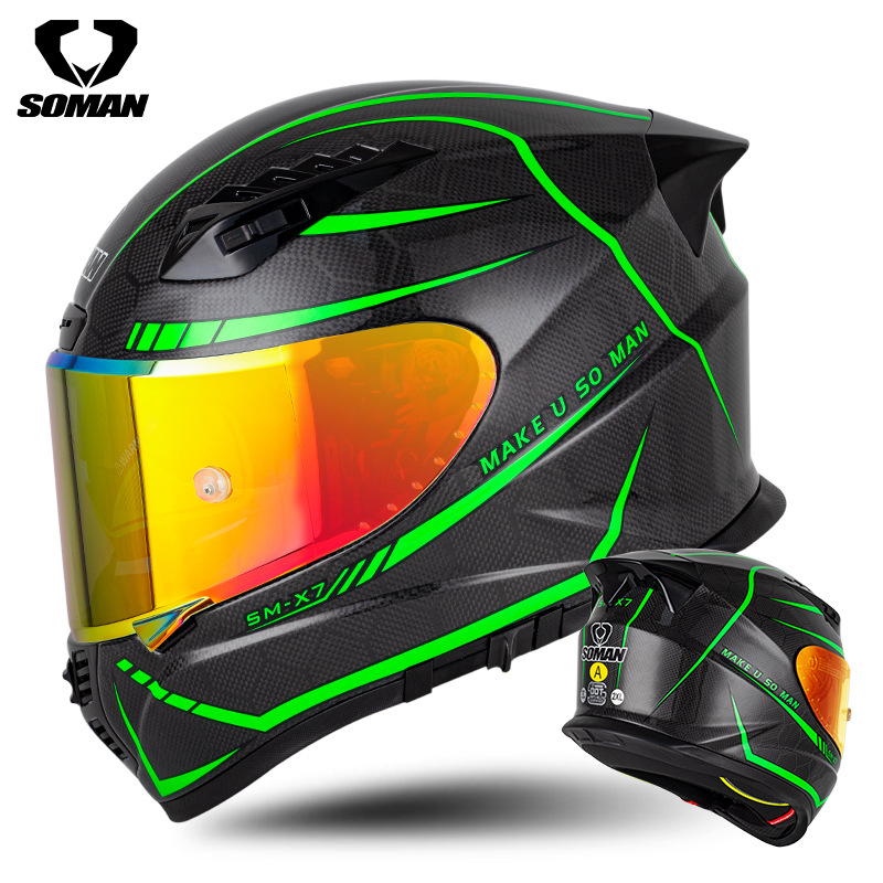 신SOMAN 오토바이 탄소 섬유 더블 렌즈 풀 헬멧 사계절 따뜻한 안전 헬멧 라이딩 헬멧 X7S