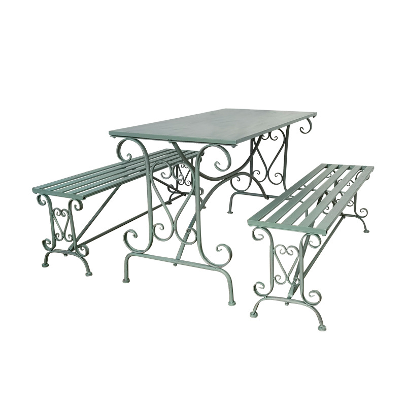 • 오래된 연두색/테이블 + 벤치 2 개 (철제 테이블)
