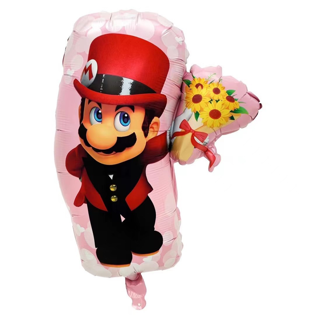 새로운 게임 만화 마리오 생일 파티 레이아웃 장식 알루미늄 필름 풍선 도매스토어 가기