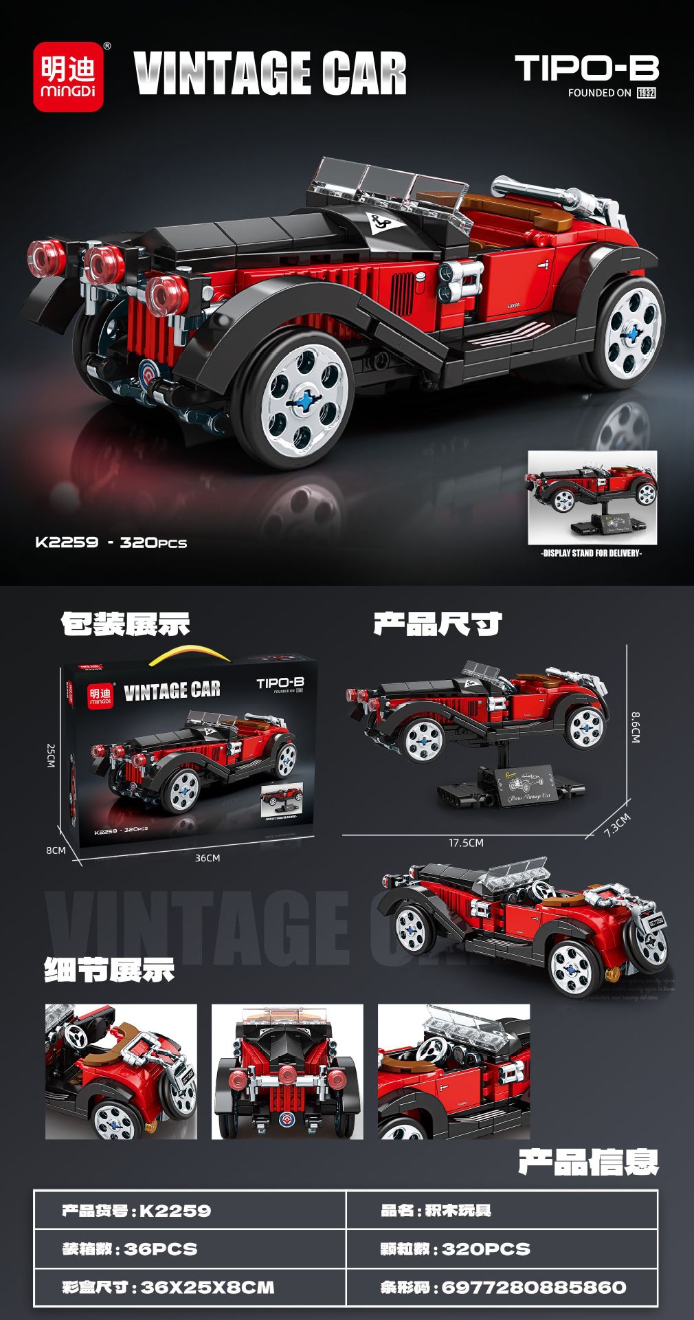 • K2260 레트로 블록 자동차