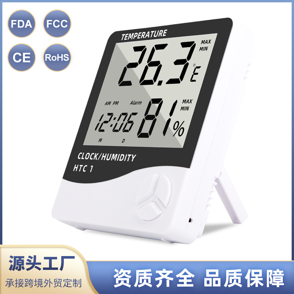 HTC-1 고정밀 옥내 전자 온도계 알람 시계 가정용 대형 스크린 디지털 디스플레이 다기능 온도 습도 미터