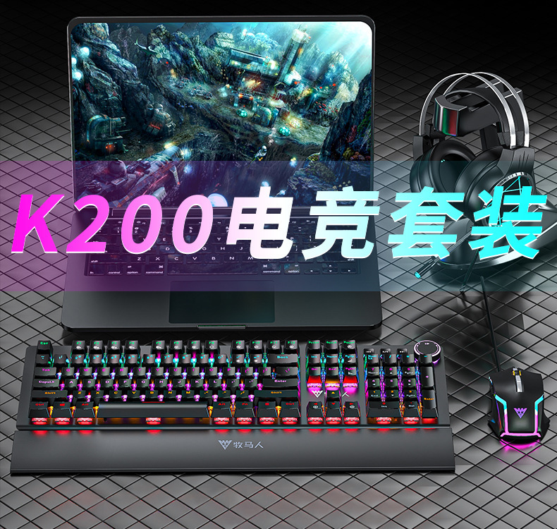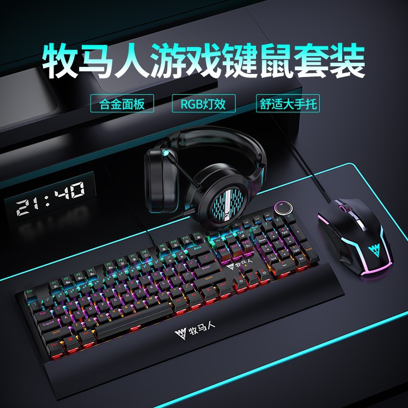 • 메탈 블랙 [혼합 라이트-레드 축] + 랭글러 M5 E-스포츠 매크로 마우스 + 게임 헤드셋