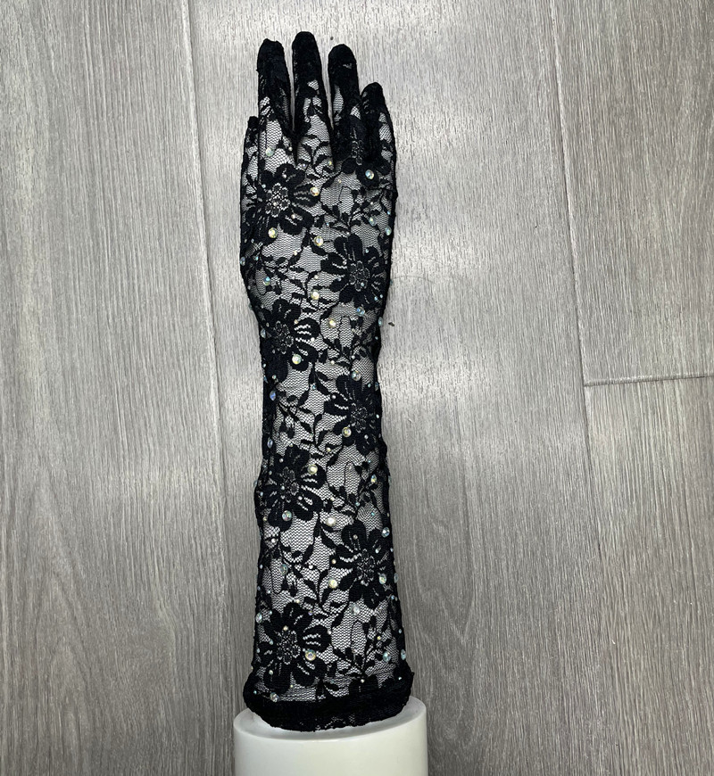레이스 핑거 라인 석 섹시한 중간 길이 장갑 여성용 블랙 원피스 무대 공연 사진 자외선 차단제 암 세트 크로스 보더