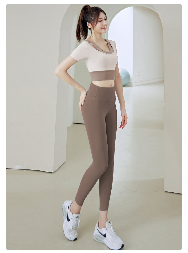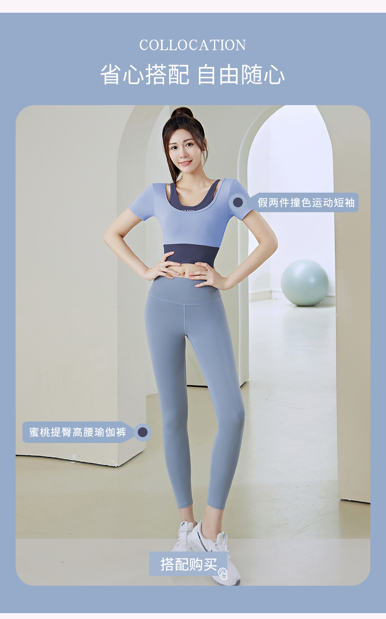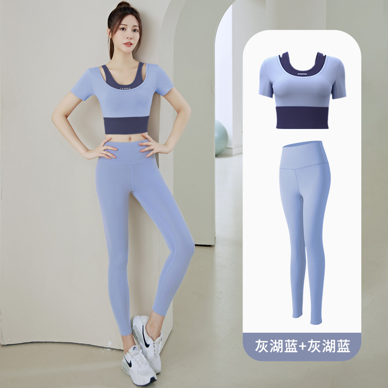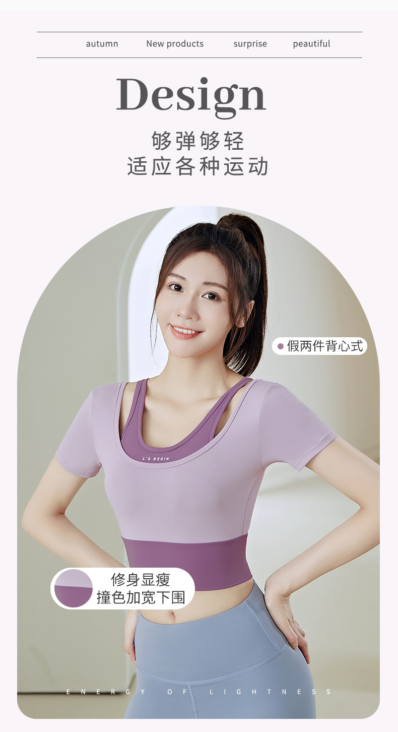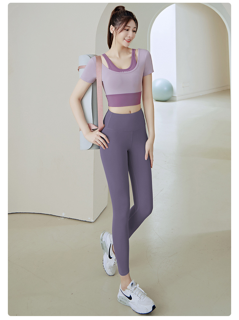 Juyitang 여성 러닝 피트니스 반팔 스포츠 탑, 가슴 패드 슬리밍 알몸 타이트 슬림 세트 요가 세트
