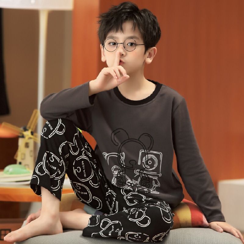 어린이 잠옷 소년과 소녀 가정 옷 소녀 봄과 가을 면 긴팔 작은 소년 중간 및 큰 어린이 가을 세트스토어 가기