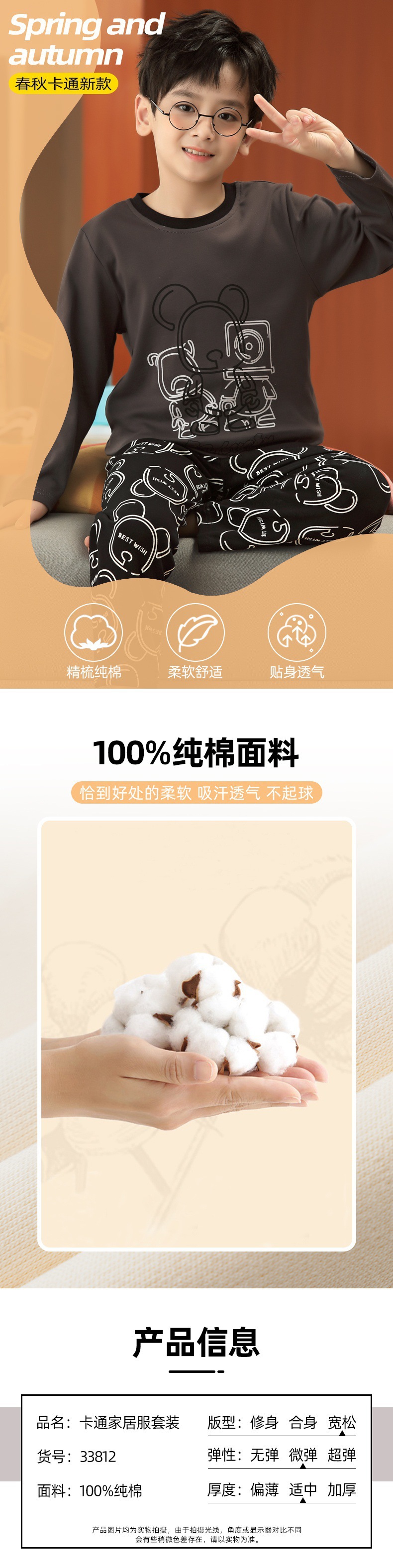 어린이 잠옷 소년과 소녀 가정 옷 소녀 봄과 가을 면 긴팔 작은 소년 중간 및 큰 어린이 가을 세트