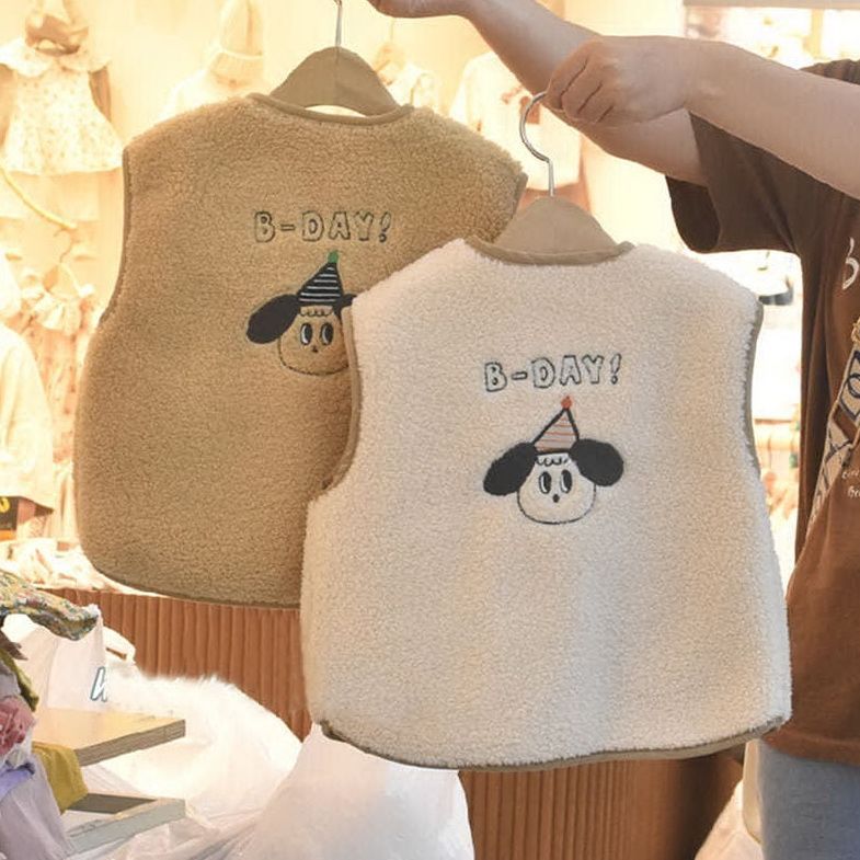 아기용 플리스 조끼 상의 가을 겨울 신상 남녀 아기 캐주얼 만화 조끼 겨울옷 어린이 조끼 가디건