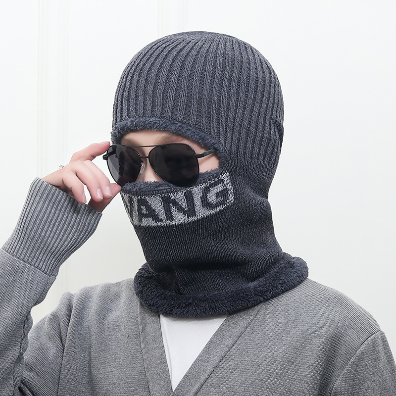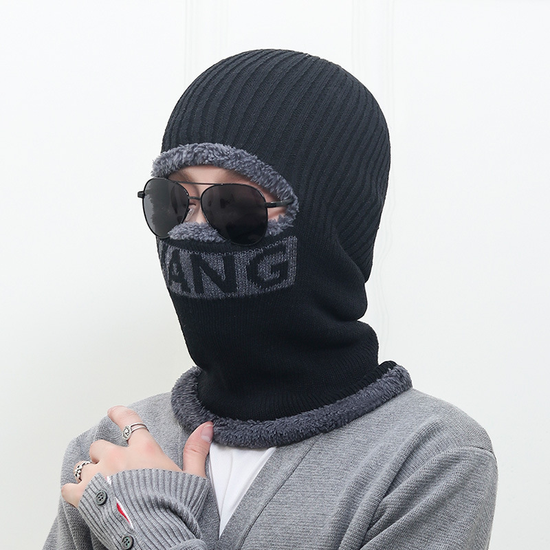 겨울 WANG 레터 사이클링 통합 캡 기모 방한 귀 보호 얼굴 보호 일체형 니트 모자 목 울 모자