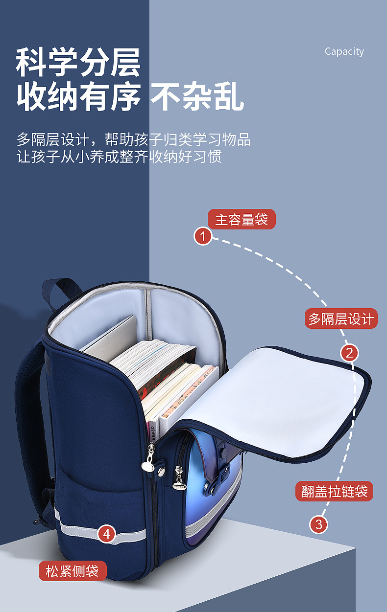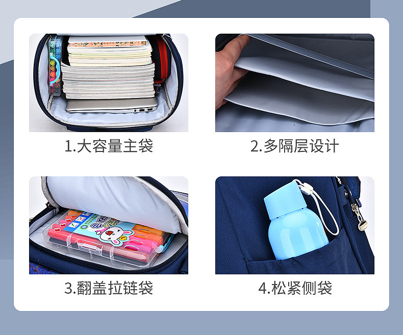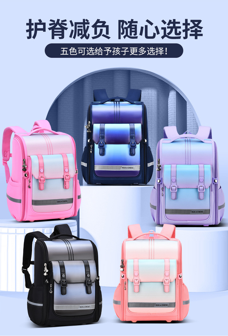 초등학생을위한 Huacheng New Ridge Protection 방수 스쿨백 1 ~ 6 세 어린이를위한 내마모성 대용량 다기능 배낭
