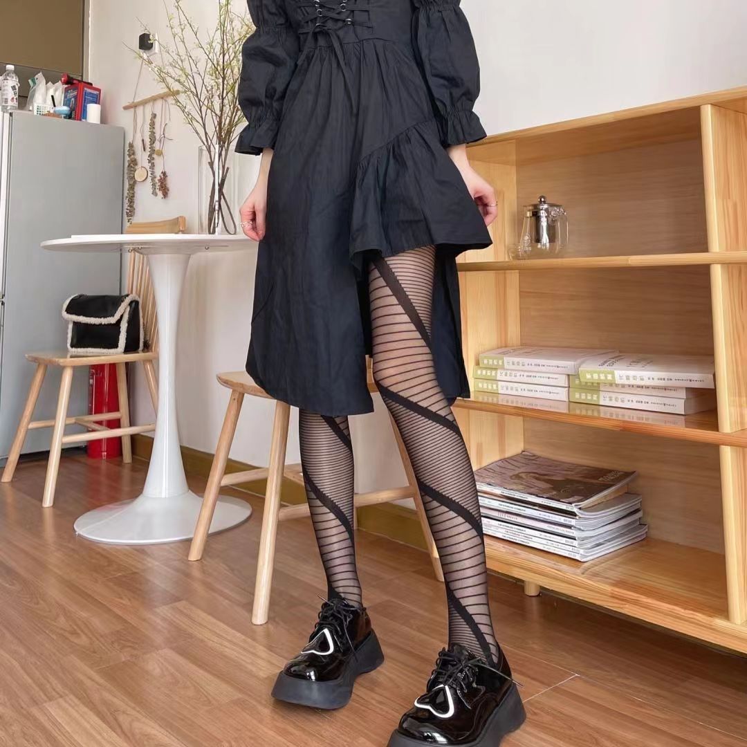 여름 유럽과 미국의 독특한 자카드 팬티 스타킹 수평 스트라이프 능직 섹시 울트라 얇은 슬림 핏 나이트 클럽 팬티 스타킹 여성스토어 가기