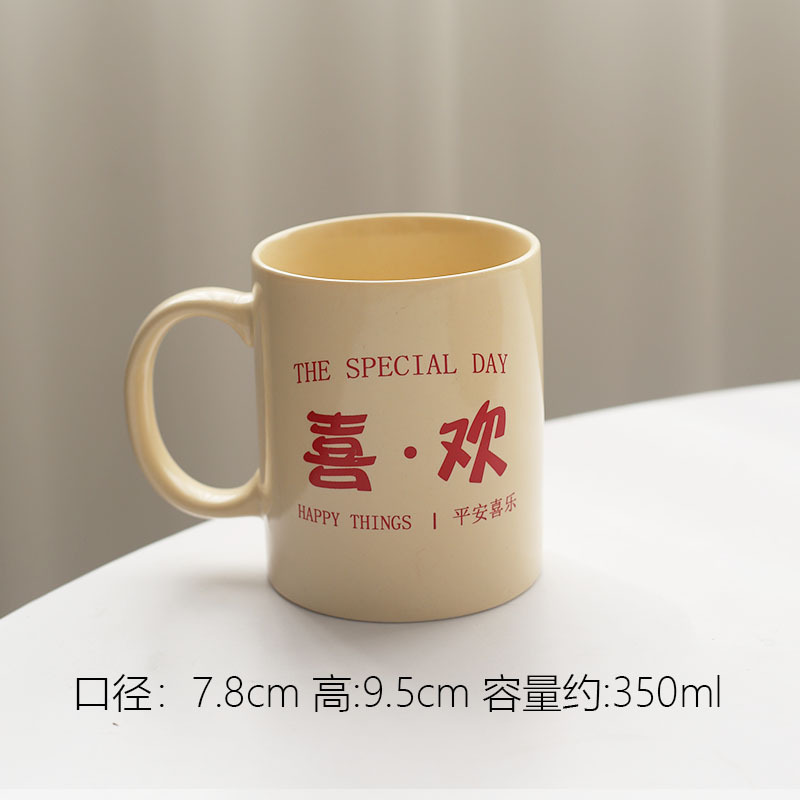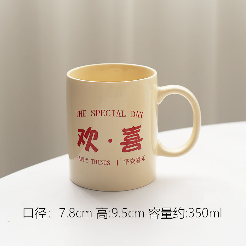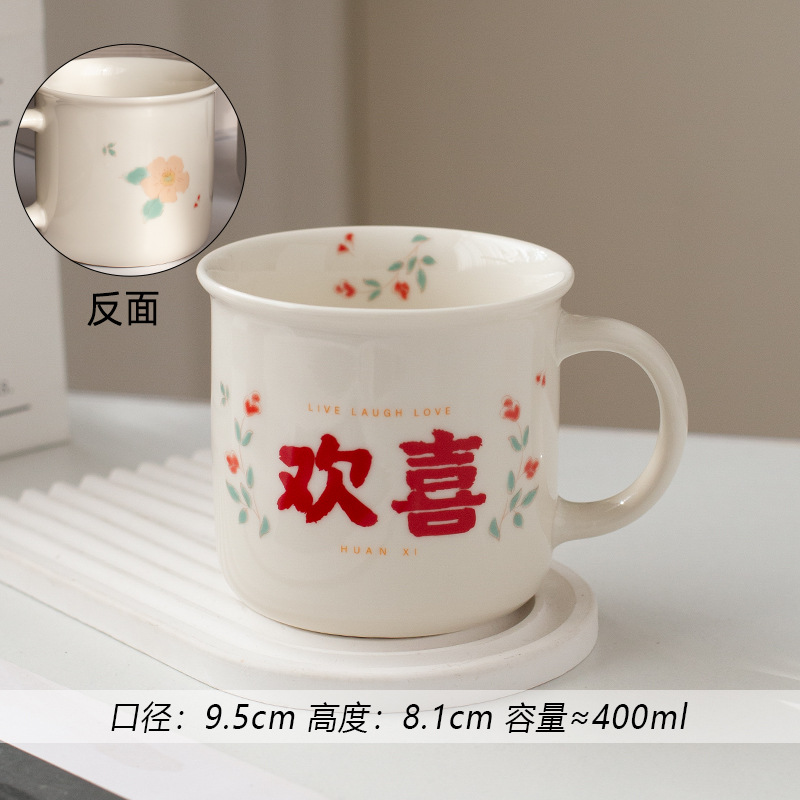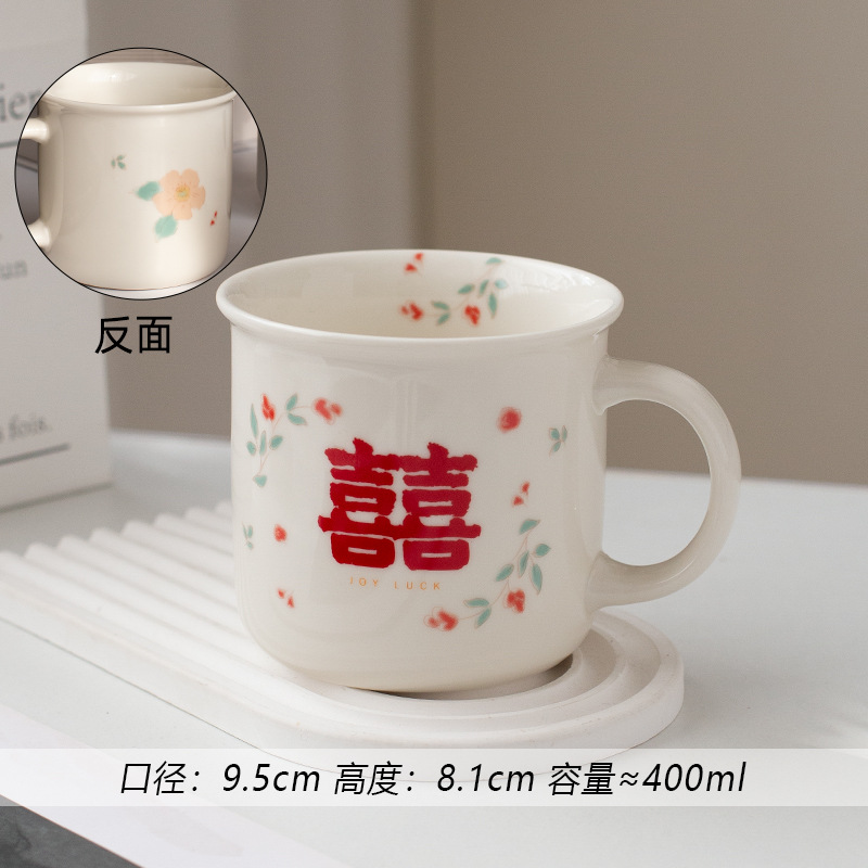 In 중국식 행복한 캐릭터 세라믹 머그 해피 웨딩 핸드 헬드 머그 웨딩 동반 선물 쌓인 머그 세트 통나무스토어 가기