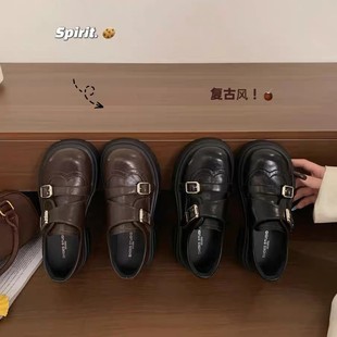 두꺼운 밑창의 영국풍 여성용 가죽 신발 2025년 신상 봄 가을 슬립온 메리제인 로퍼스토어 가기