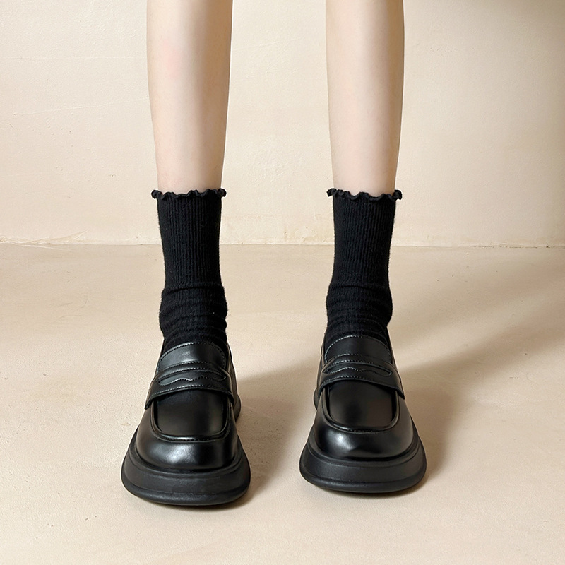 두꺼운 밑창의 영국풍 여성용 가죽 신발 2025년 신상 봄 가을 슬립온 메리제인 로퍼