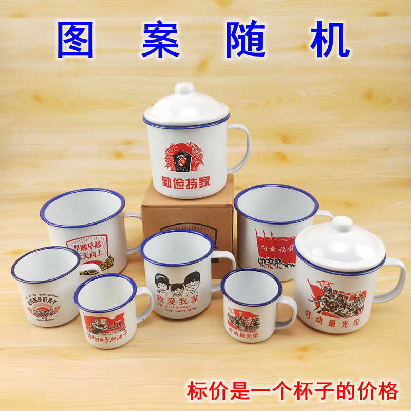 에나멜 컵 도매 구식 향수 바베큐 물 컵 뚜껑 대용량 두꺼운 철 차 탱크 창조적 인 인용문 차 컵스토어 가기