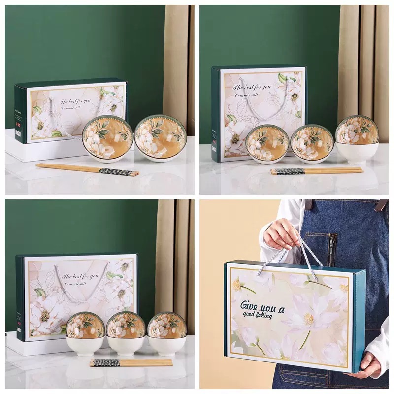 행운과 부를 부르는 행운의 고양이 청화 도자기 그릇과 젓가락 세트 선물 상자 말년 행사 오픈 프로모션 소형 선물스토어 가기