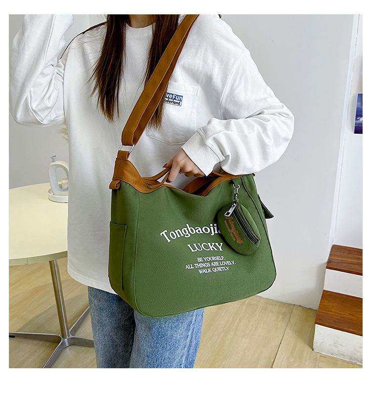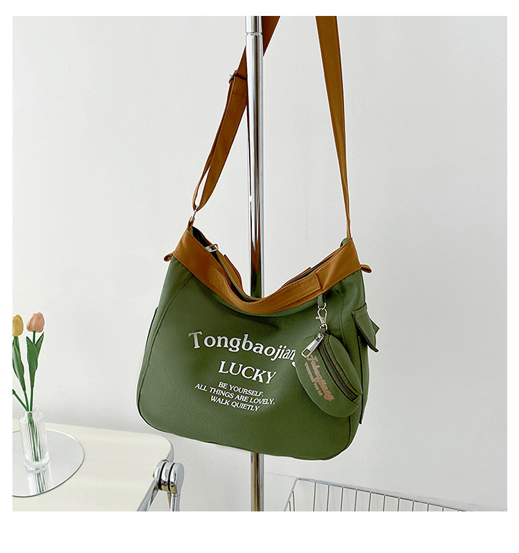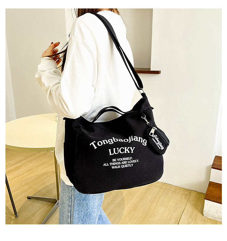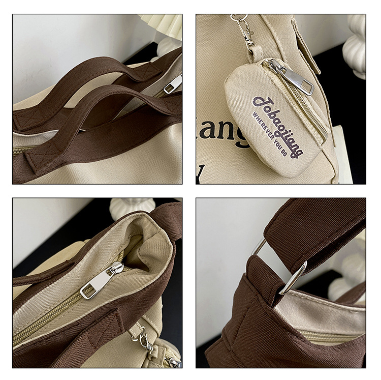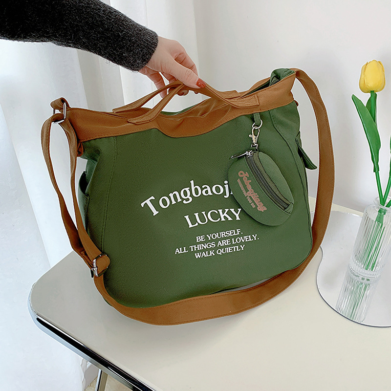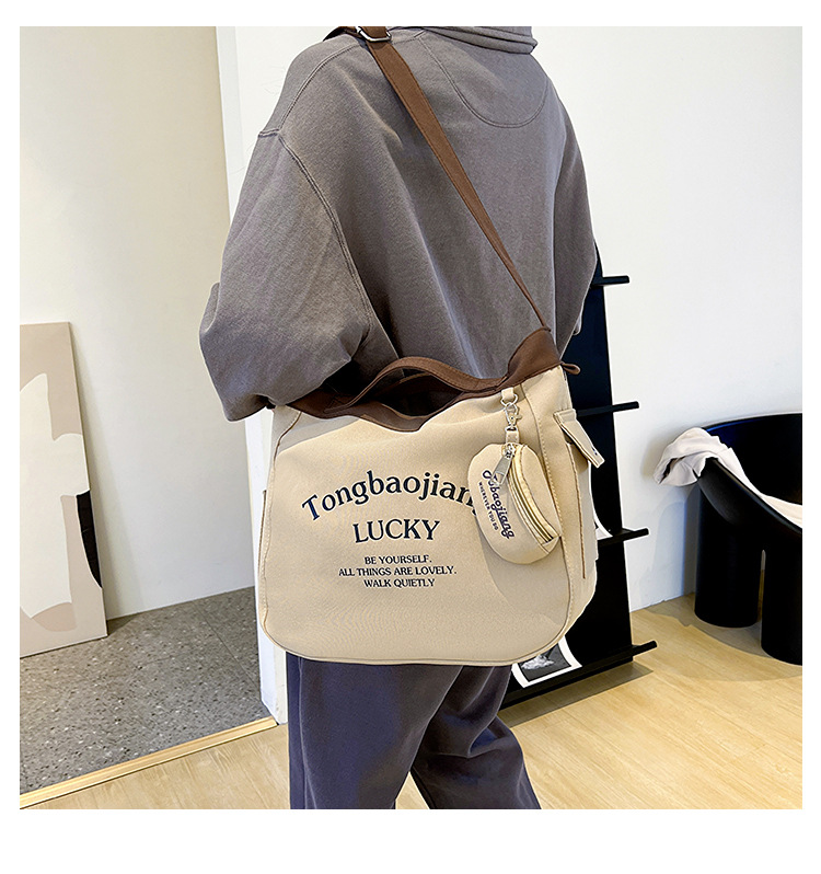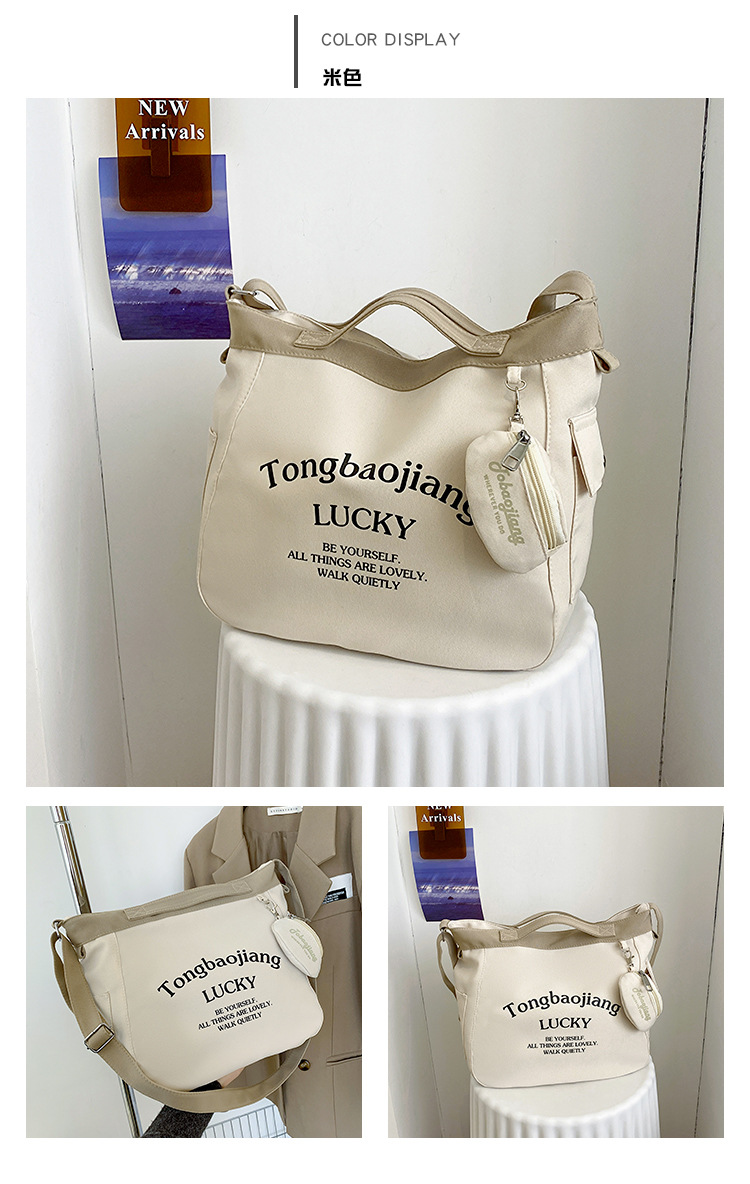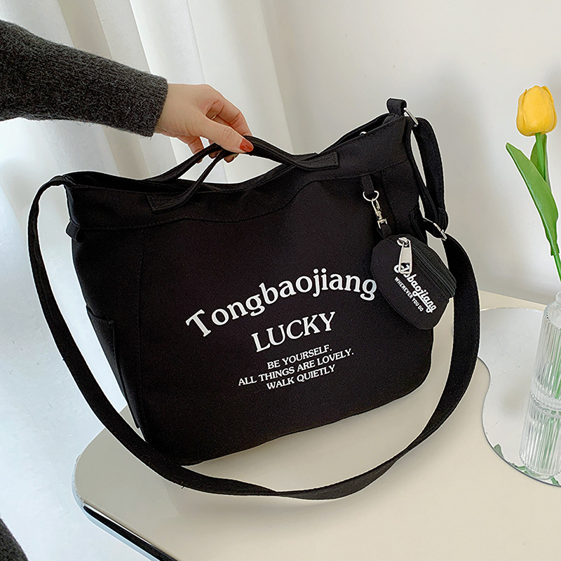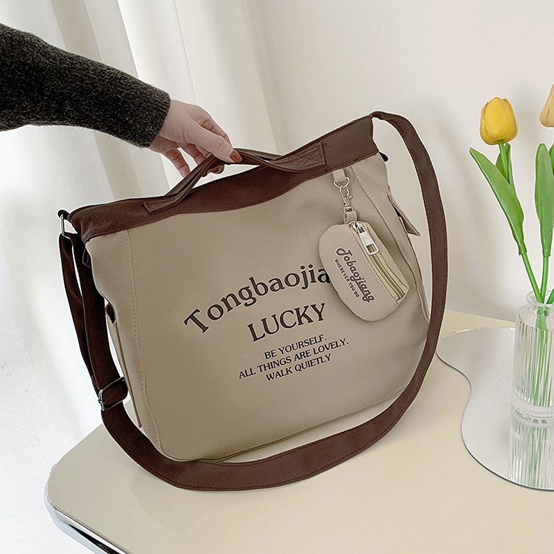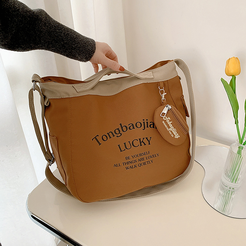 캔버스 가방 일본과 한국 스타일 대용량 학생 어깨 가방 여성 펜던트 캔버스 배낭 예술적 캐주얼 올 매치 크로스 바디 백