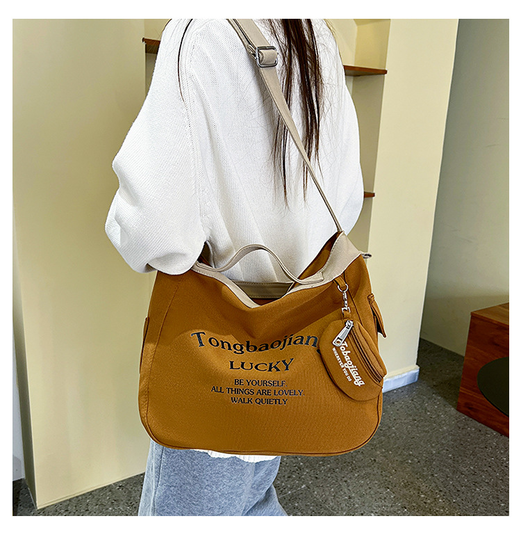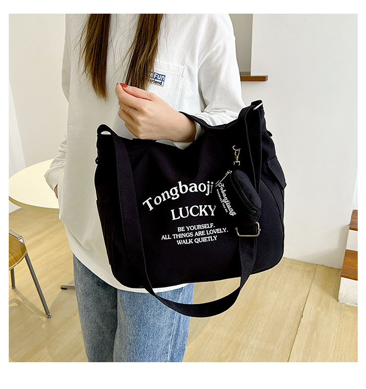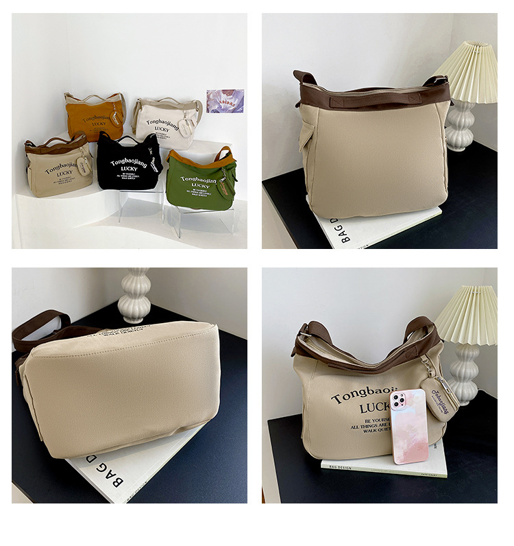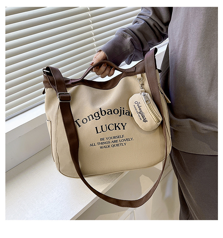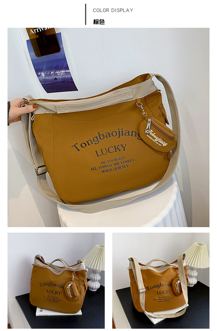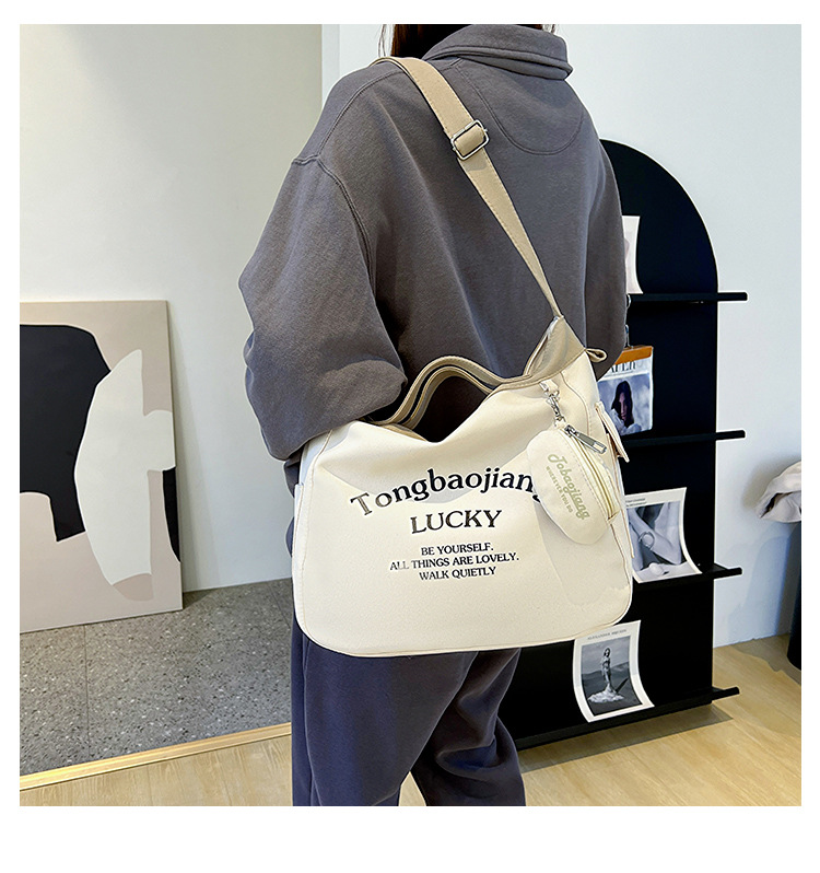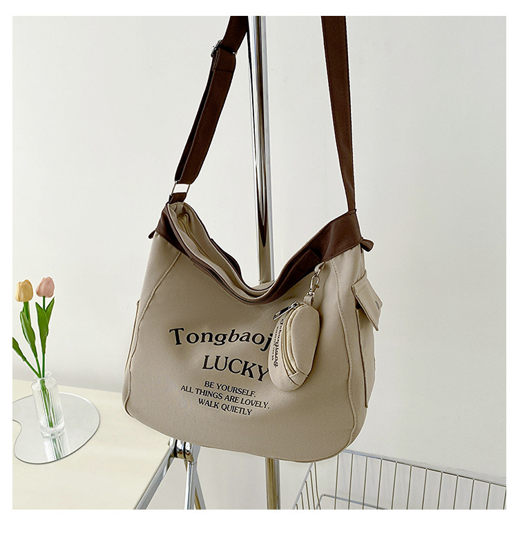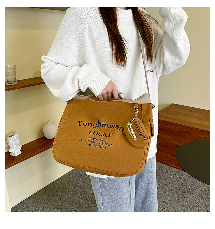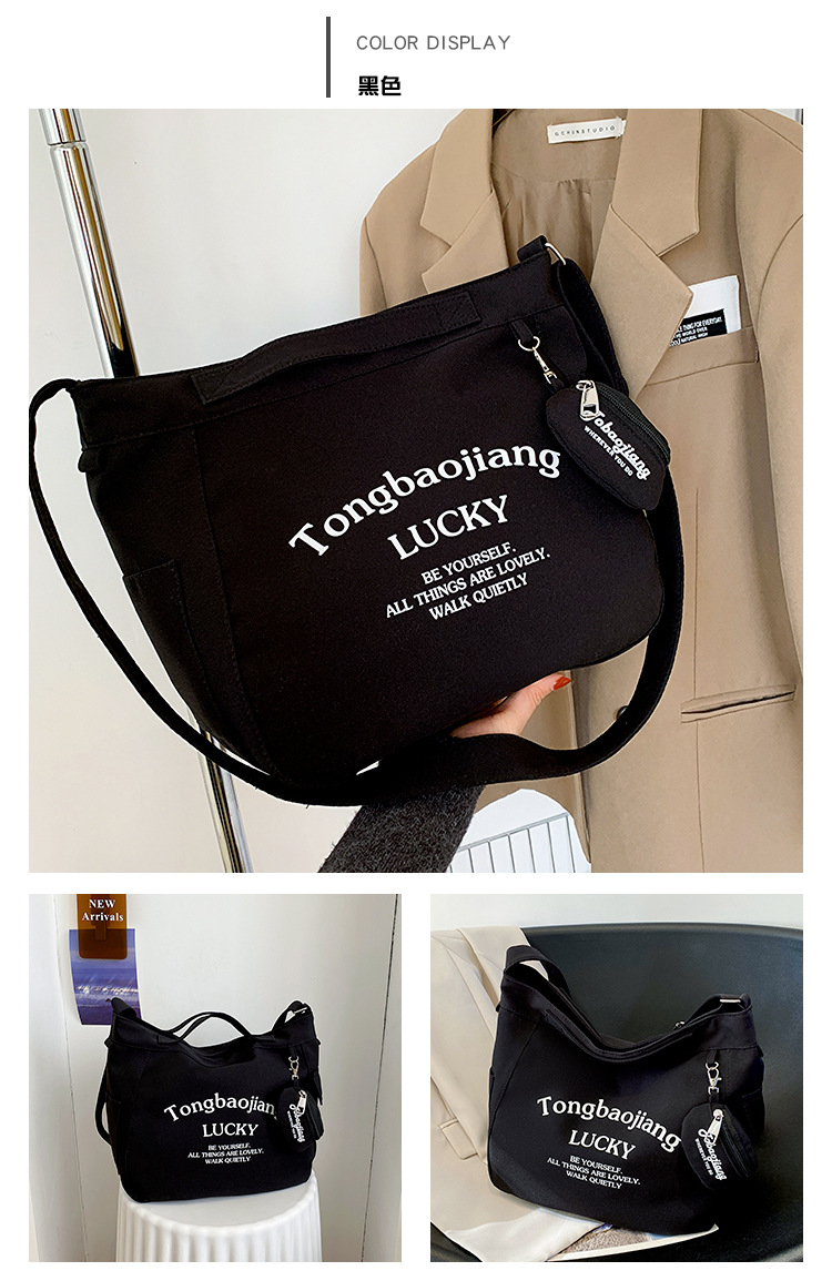 캔버스 가방 일본과 한국 스타일 대용량 학생 어깨 가방 여성 펜던트 캔버스 배낭 예술적 캐주얼 올 매치 크로스 바디 백