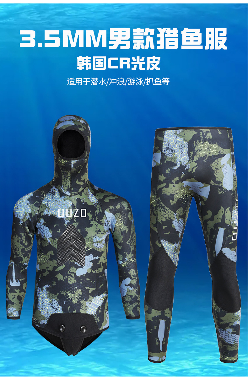 3.5mmCR光皮猎鱼服分体迷彩潜水衣男加厚保暖防寒冬季渔猎潜水服